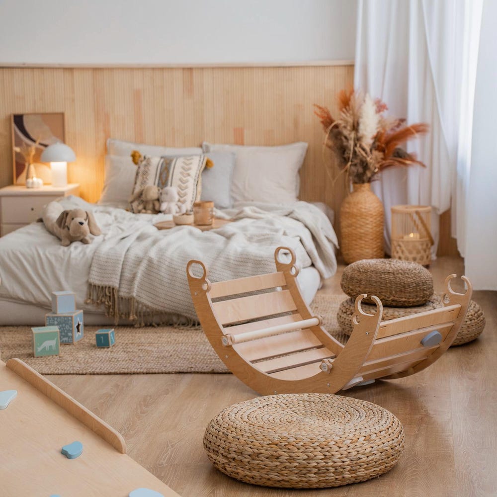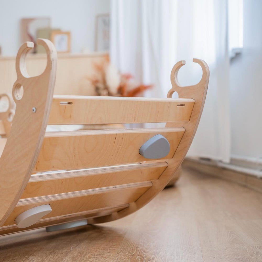 ROCKER: Our Montessori arch-rocker has perfectly finished edges and in the package comes 2 dowels with 4 small HappyMoon screws which allow toddlers to feel more comfortable and stable when swinging. HappyMoon smart design protects your toddler fingers from pinch.