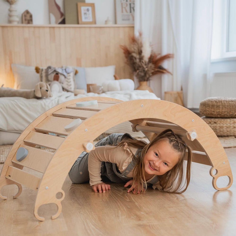 HAPPYMOON® climbing arch, ramp, rocker-arch, Montessori toys, montessori furniture, rainbow rocker, wooden climbing toy for toddlers