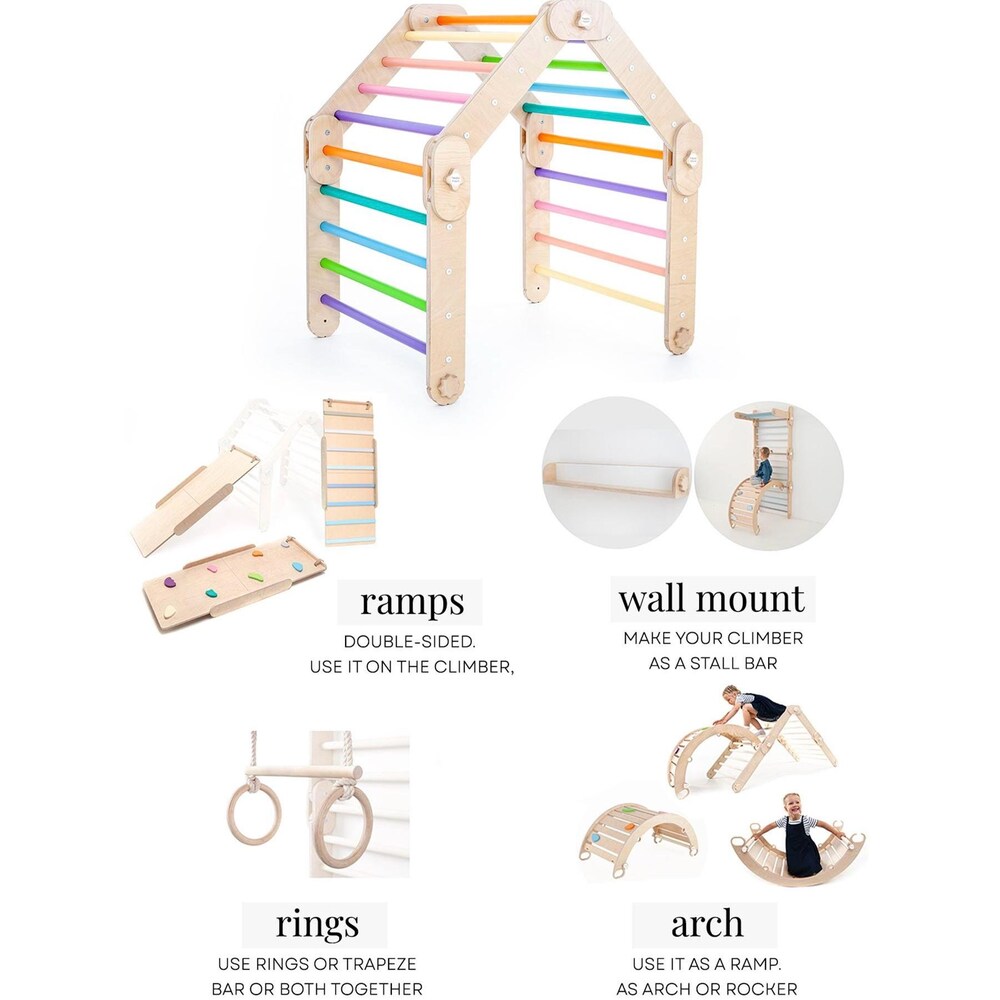 HAPPYMOON® COLORED CLIMBER, modifiable triangle, Montessori, climbing, toddler triangle, climbing triangle, transformable triangle.
