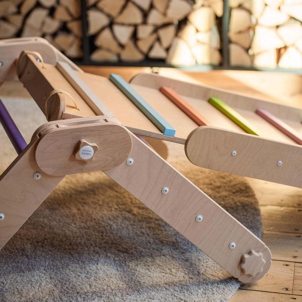 HAPPYMOON® colored climber with two colored ramps, climbing triangle, Montessori climbing gym