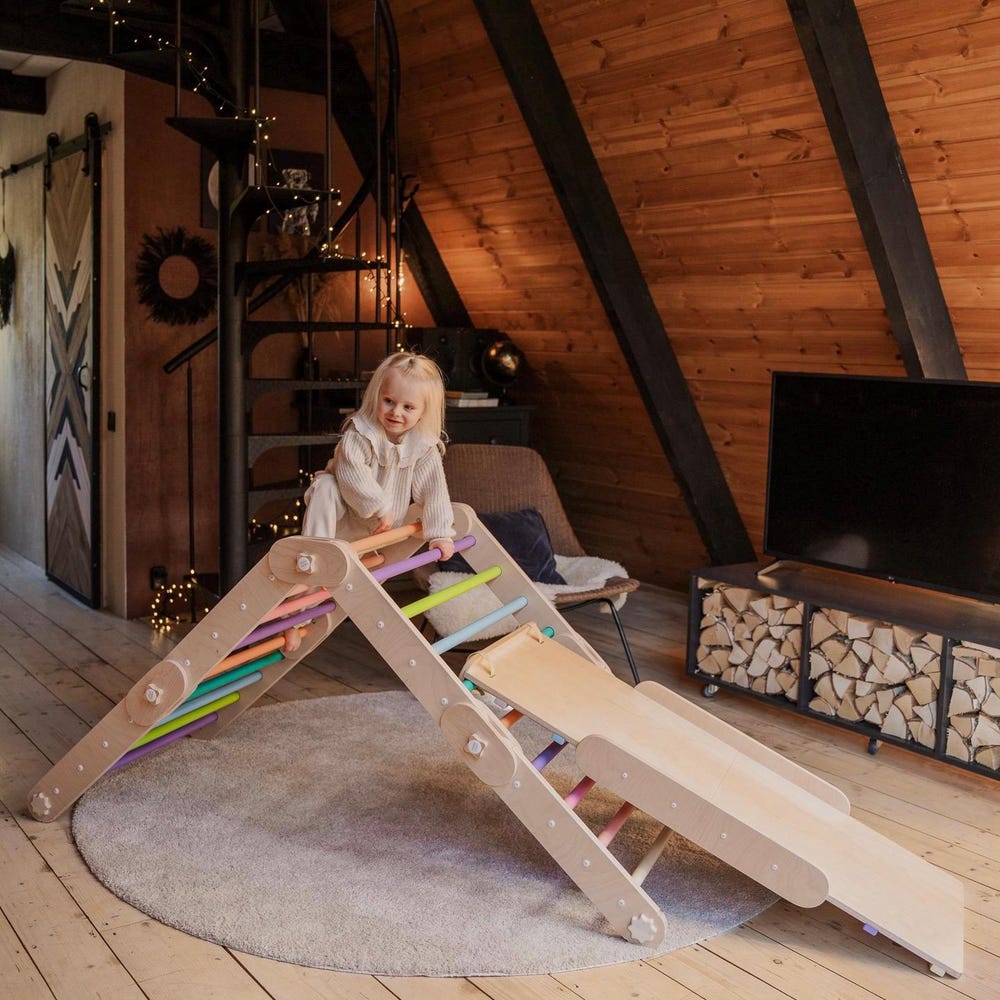 Embark on a journey towards enhancing your child’s physical development and creativity with our Transformable Triangle Pikler – the ultimate Kids Gymnastics Complex designed for fun and quality home time. Crafted meticulously from high-quality, sustainably sourced materials, this innovative piece of equipment is a testament to advanced ergonomic design and child development theories.