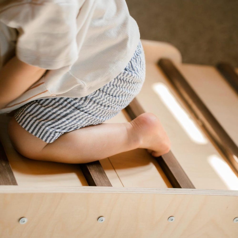 HappyMoon climber or Foldable ladder triangle is designed as a starter kit to develop gross motor skills, balance control, courage, and much more. Climbing ladder or step triangle is designed according to Waldorf toys and Montessori furniture principles. Baby climber gym for toddlers is the perfect gift. It is for children as young as 1 year to approx 7-8 years old.