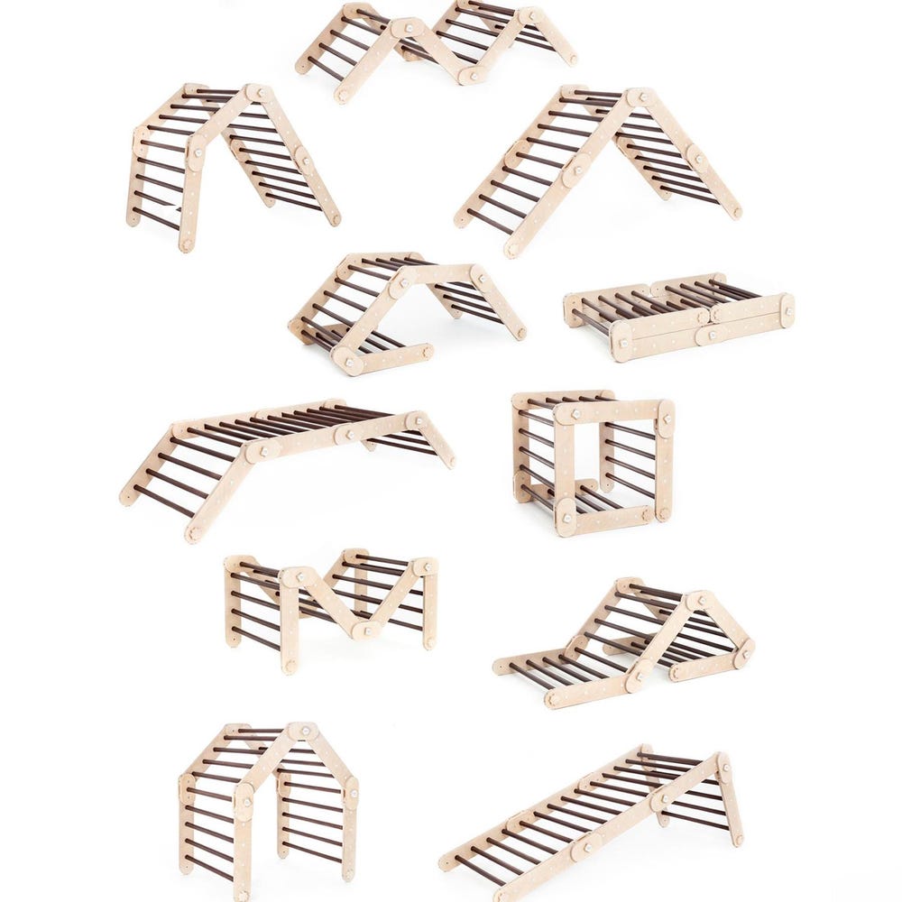 It is lower and safer than the traditional climbing triangle. It grows along with the child and his climbing skills.