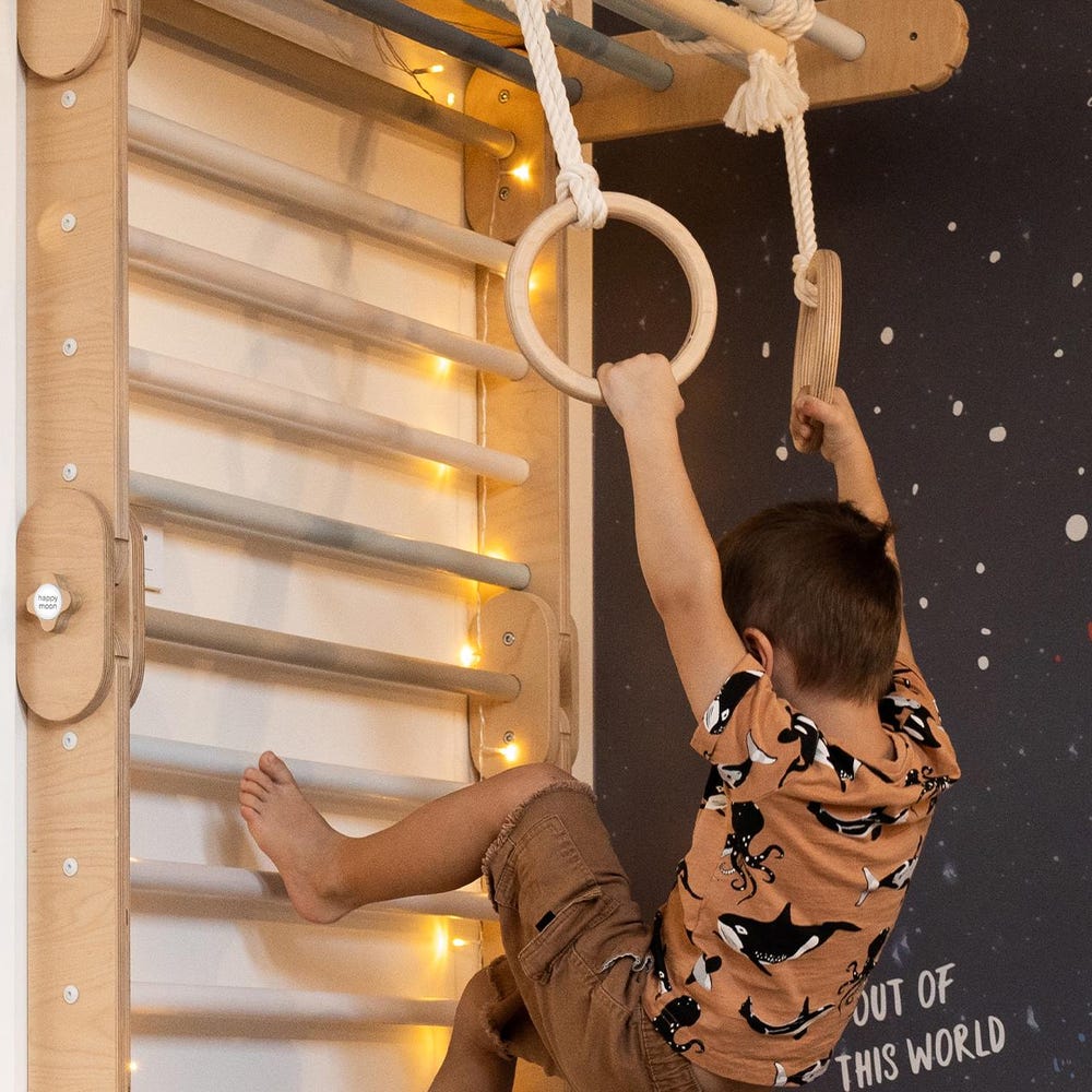 Be the first to review “Happymoon® gym rings & trapeze bar, wooden exercise rings, gymnastic rings for swedish ladder, sprossenwand kinder, fitness rings”
