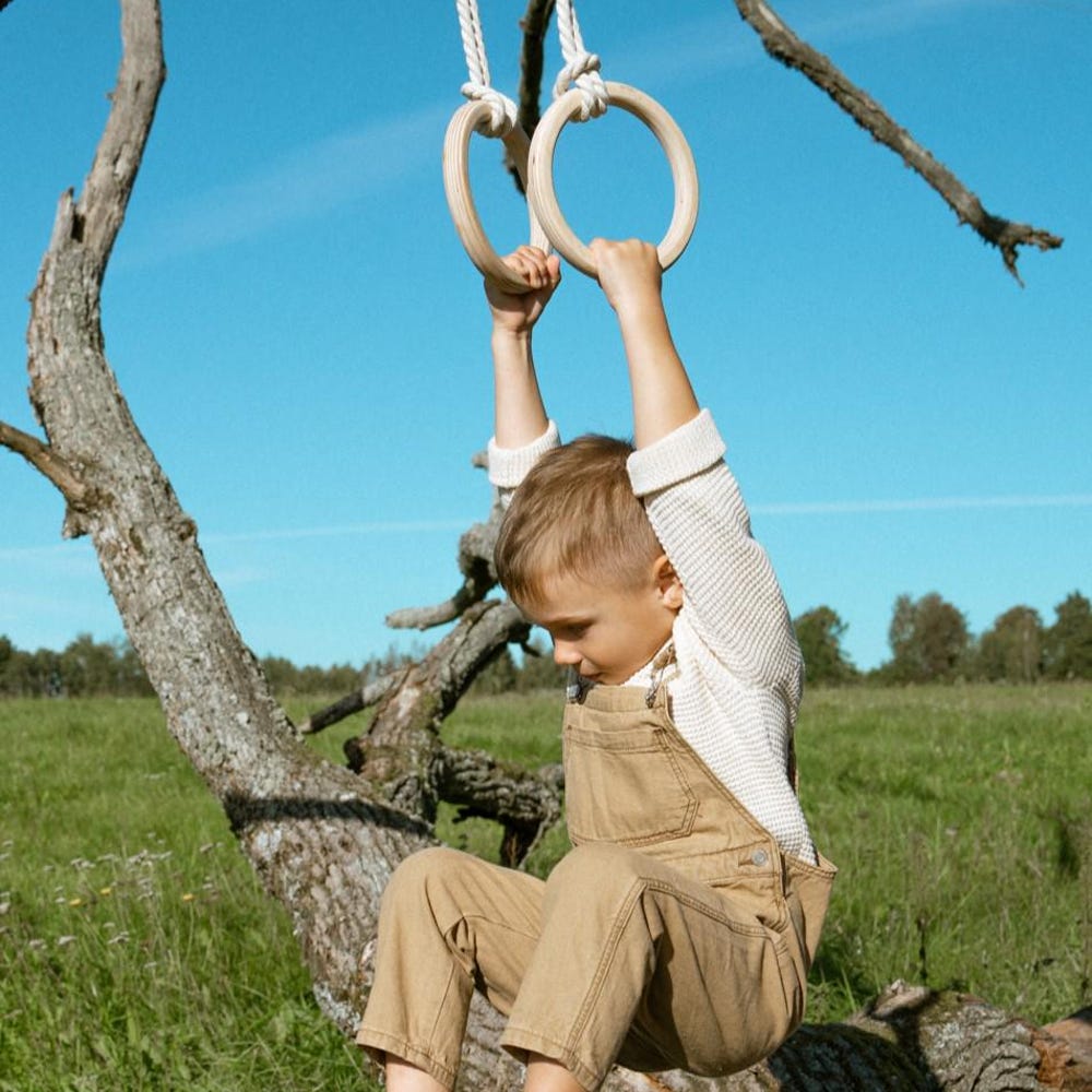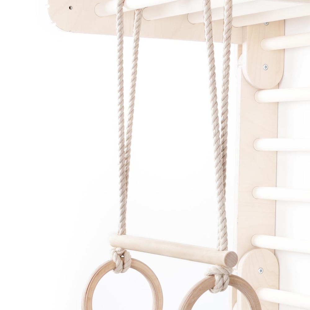 Happymoon® gym rings & trapeze bar, wooden exercise rings, gymnastic rings for swedish ladder, sprossenwand kinder, fitness rings