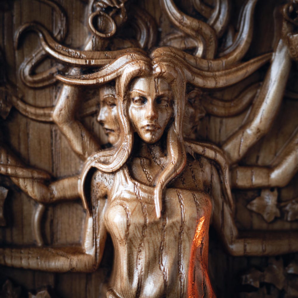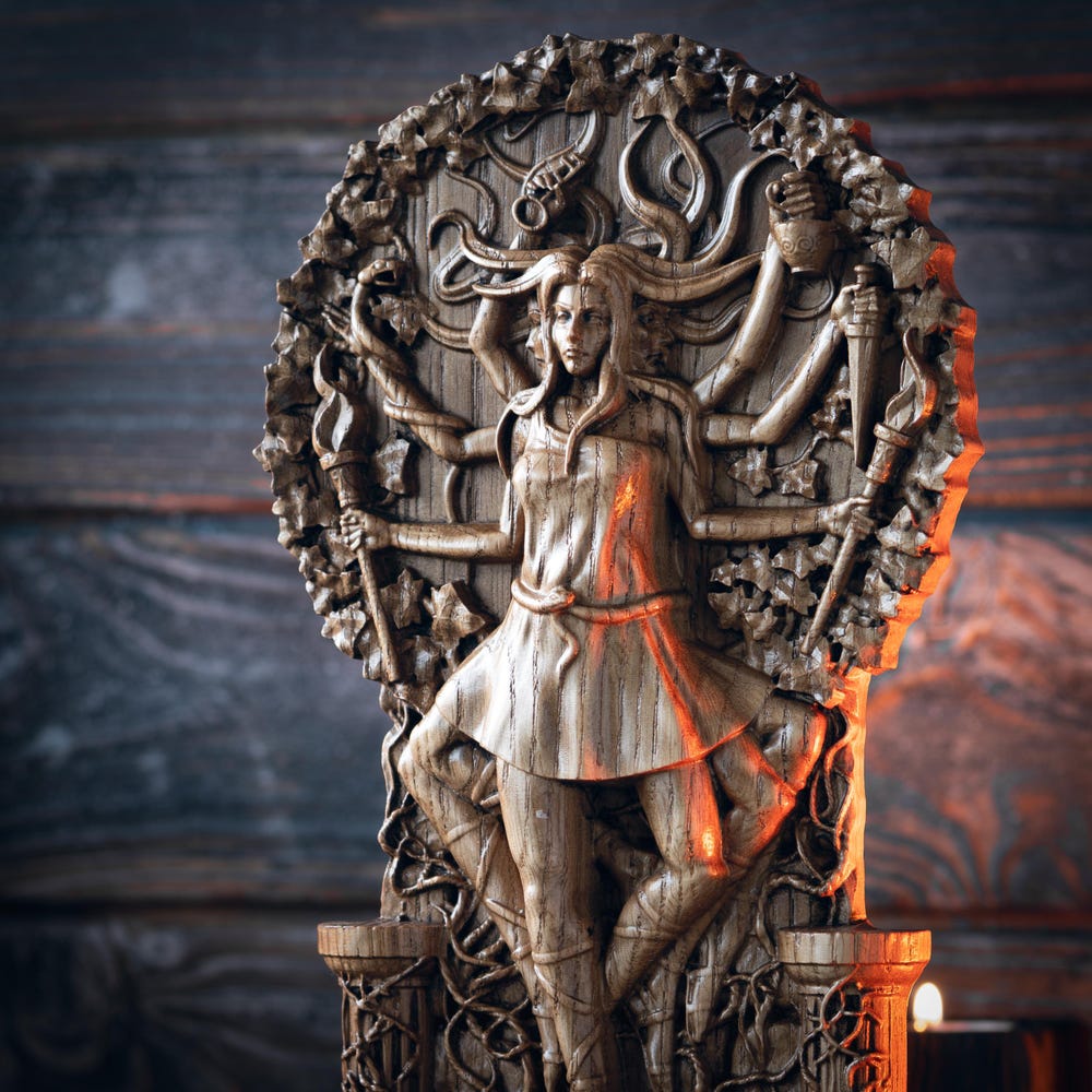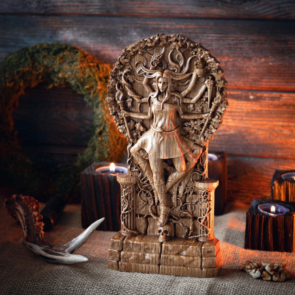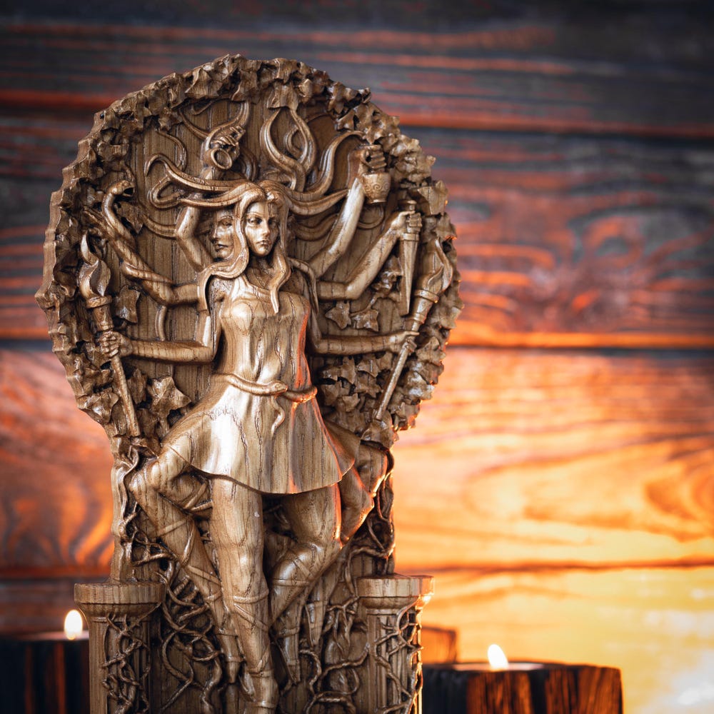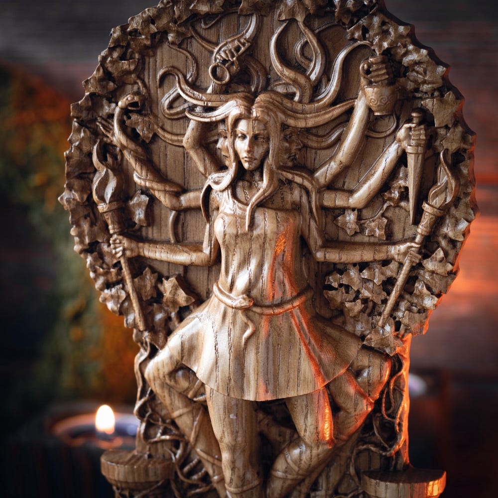 Hecate Statue – Greek Goddess of Witchcraft – Handmade Oak Wood Sculpture – Pagan Altar Decor | Wiccan Triple Goddess