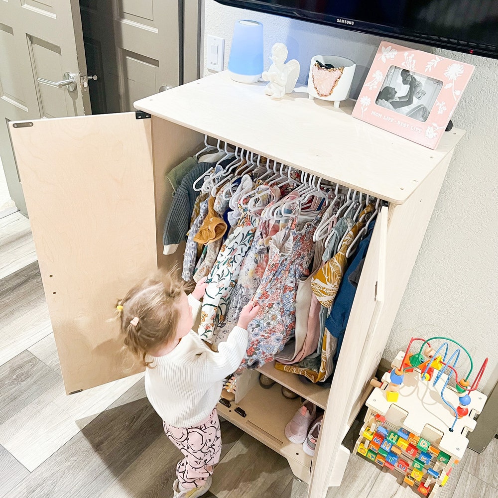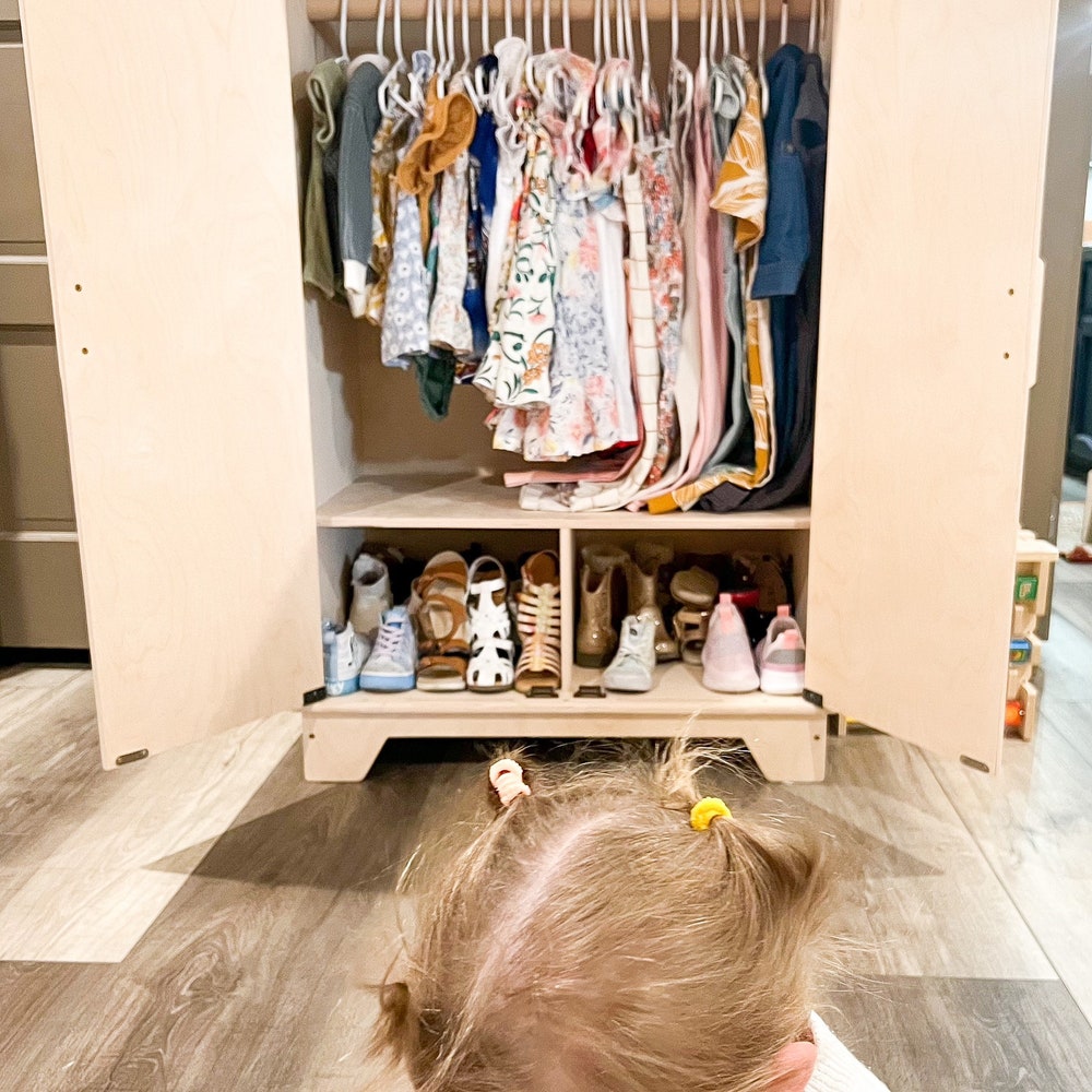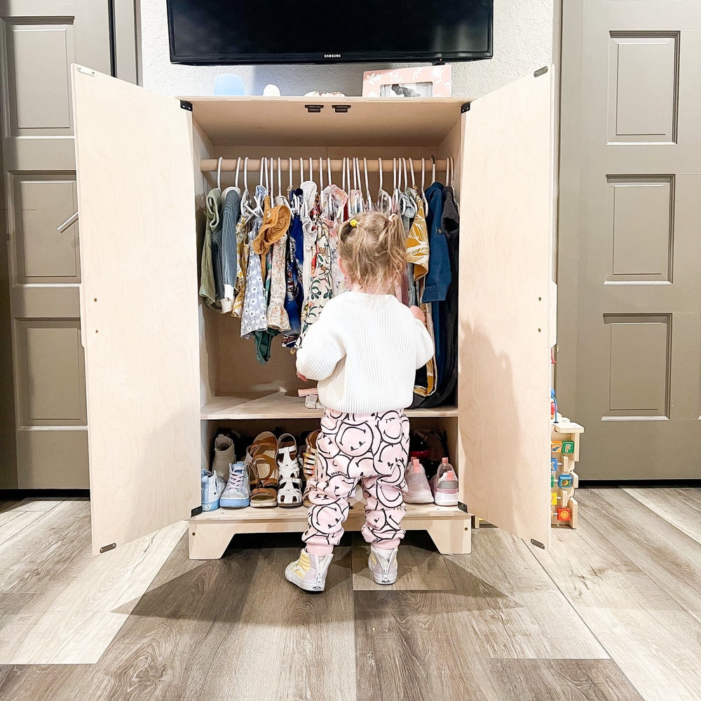 LARGE MONTESSORI WARDROBE CLOSET with STORAGE COMPARTMENTS and MAGNETIC DOORS- Built by BUSH ACRES