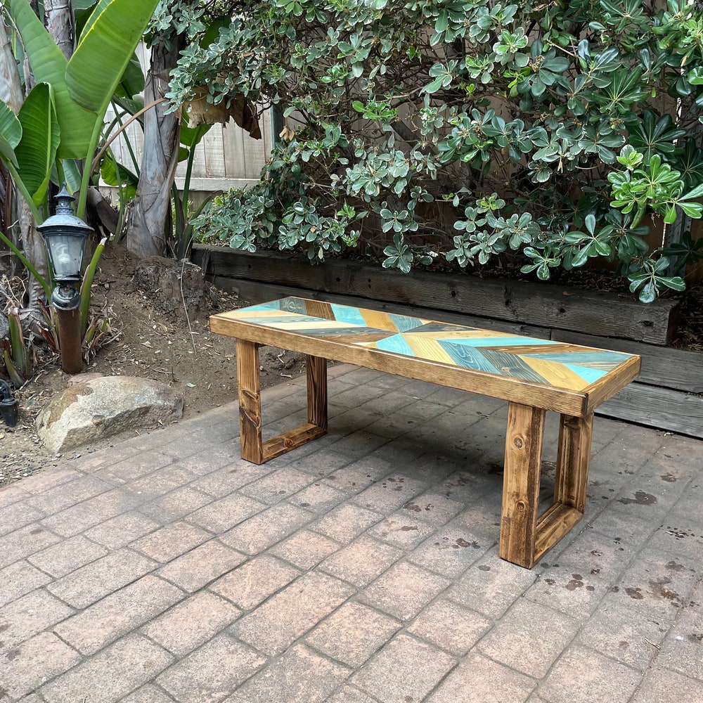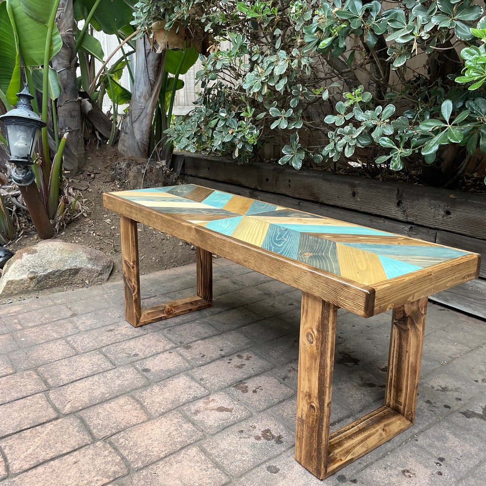 Indoor Colliding Chevron Entryway Bench 2.25 Thick Solid Wood Hallway Seat Dining Bench