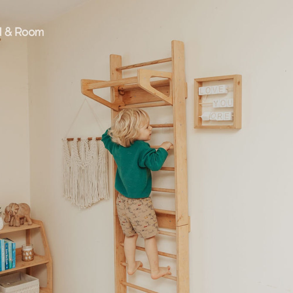 Indoor playground for Toddler room – Climbing wall with Slide, Swedish ladder, 1st birthday boy gift, educational toys, Sprossenwand kinder