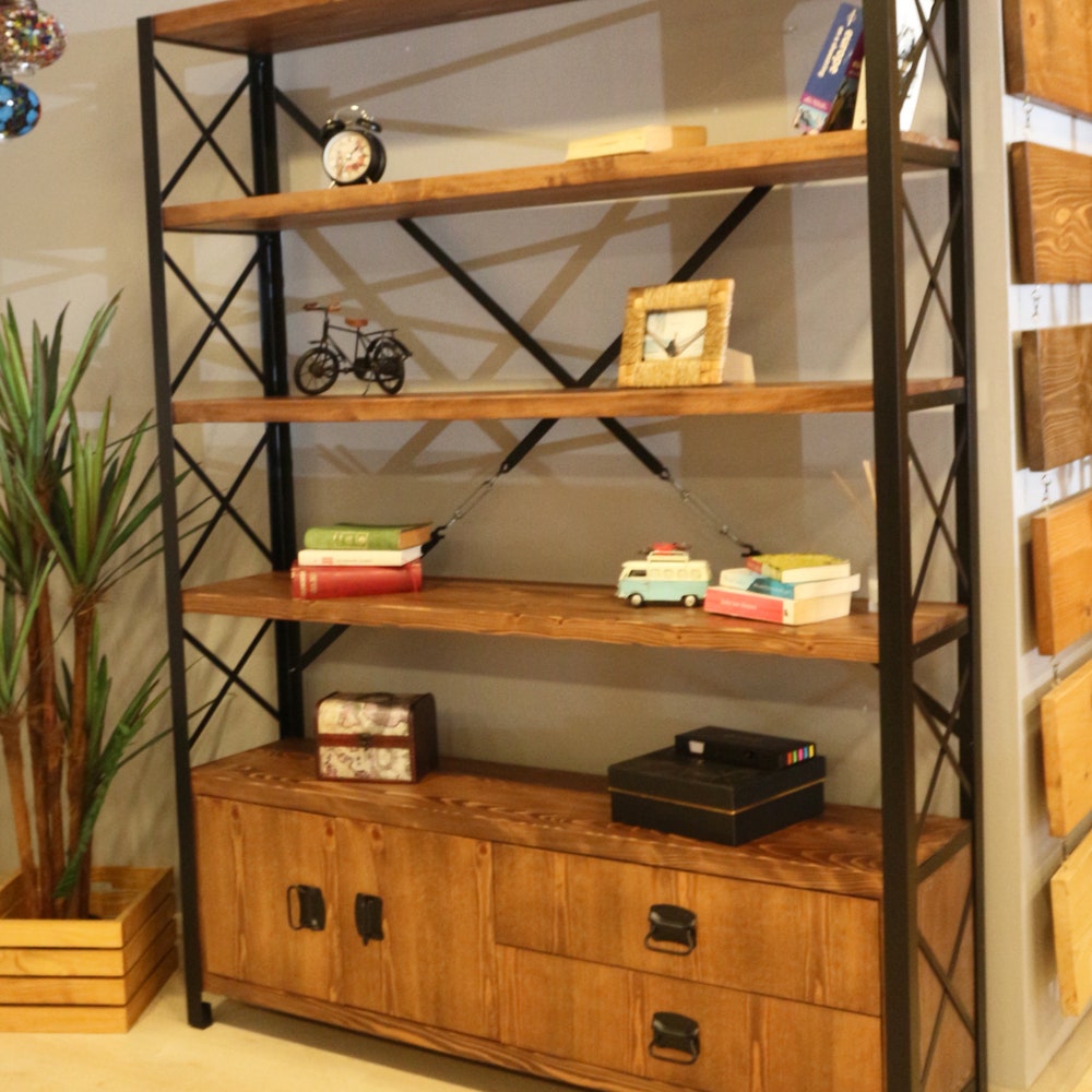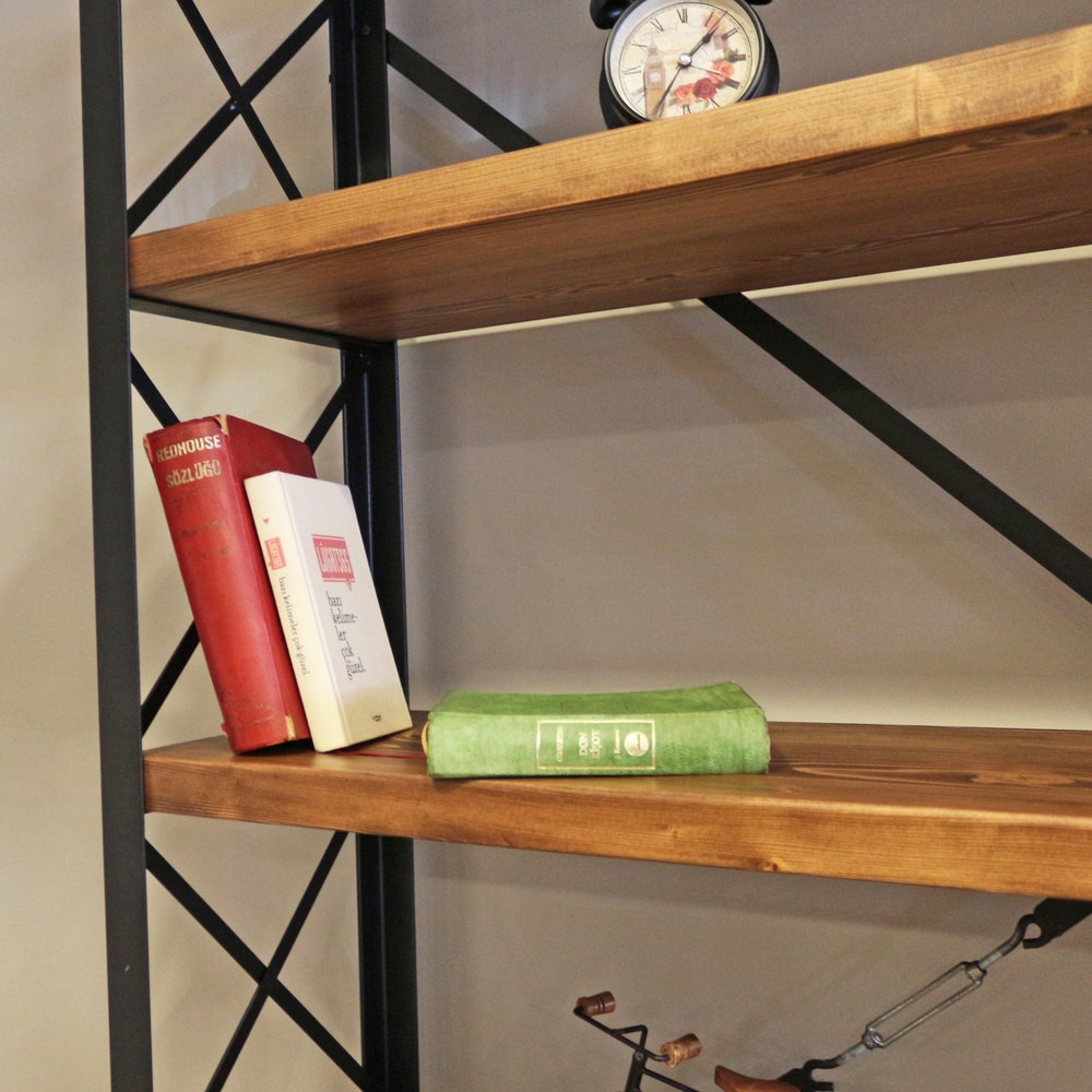 The loft style Cross X bookcase, which is the most beautiful reflection of the wood-metal combination with its stylish and dynamic design, will add elegance to your home or office.