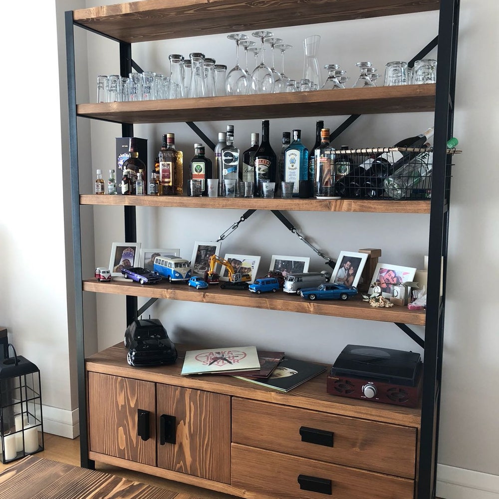 It is an ideal model that you can use for both bookshelf and storage with its drawers and cabinets.