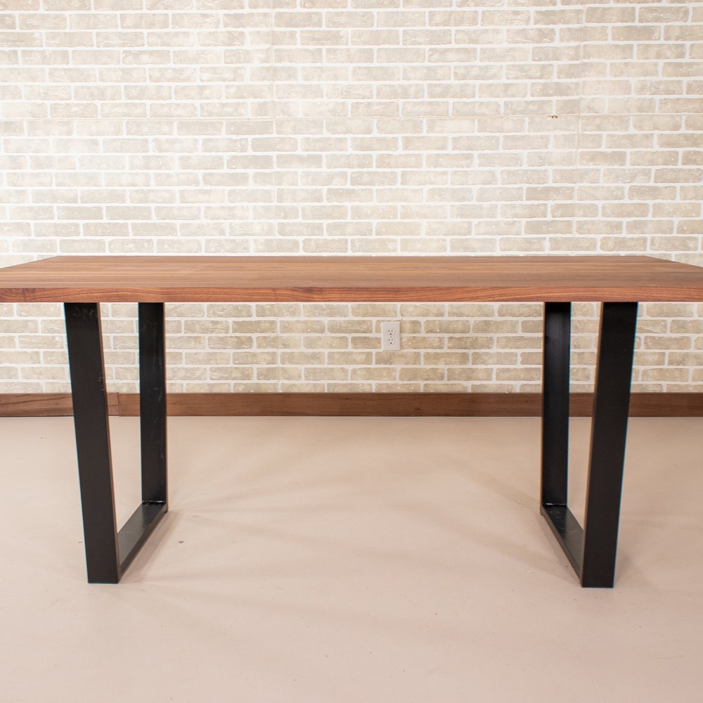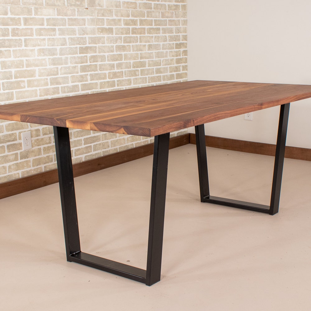 This classic industrial table pairs a solid walnut table top with steel angle shaped legs with a black finish. It’s a timeless style that fits a range of decor settings. We build every table to order so there are many ways to make this table perfect for you.