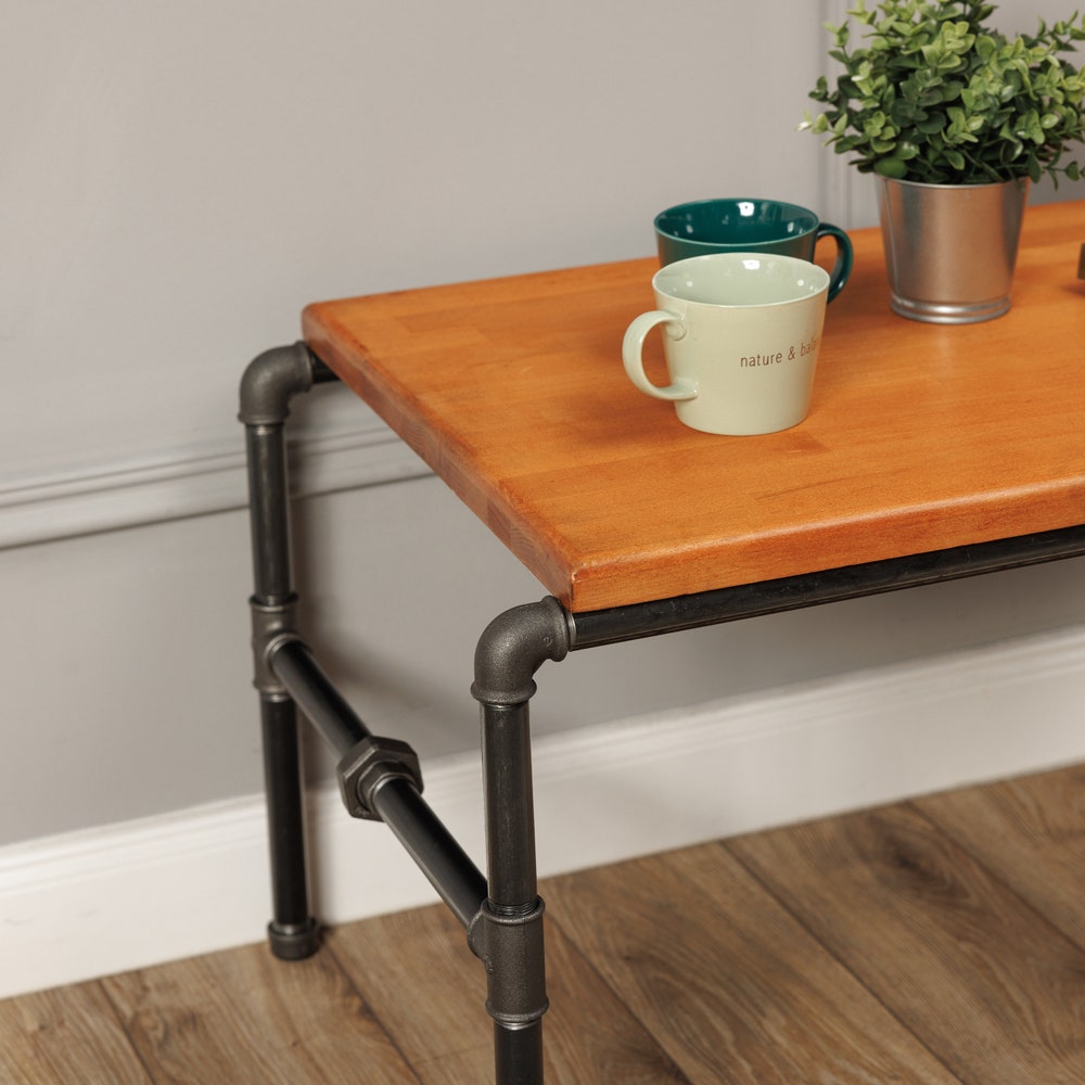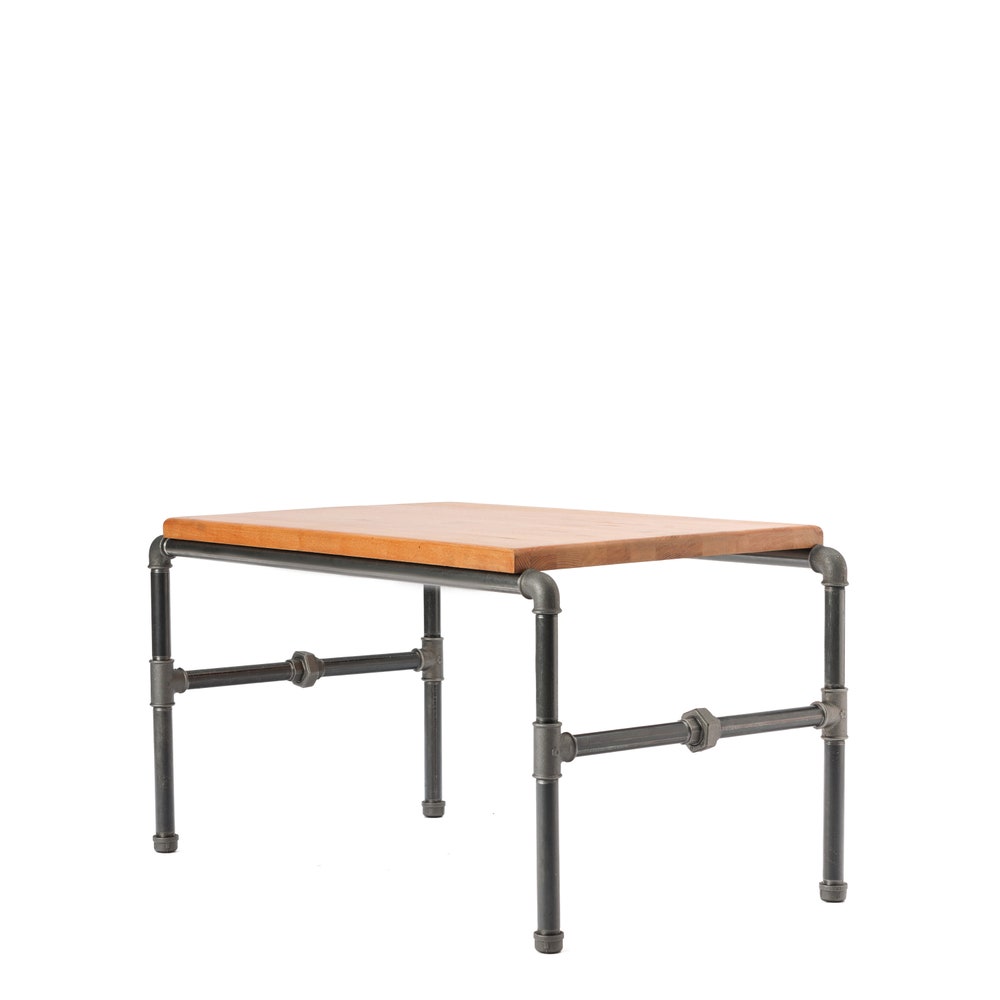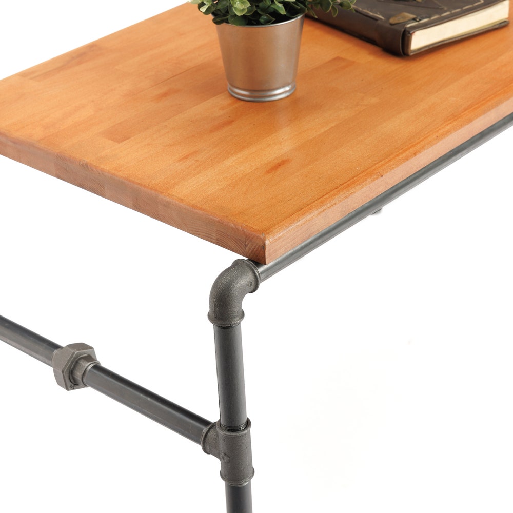 This unique table made from solid beech wood ( 3 cm thickness) and industrial pipe (3/4) will add charm to every house.