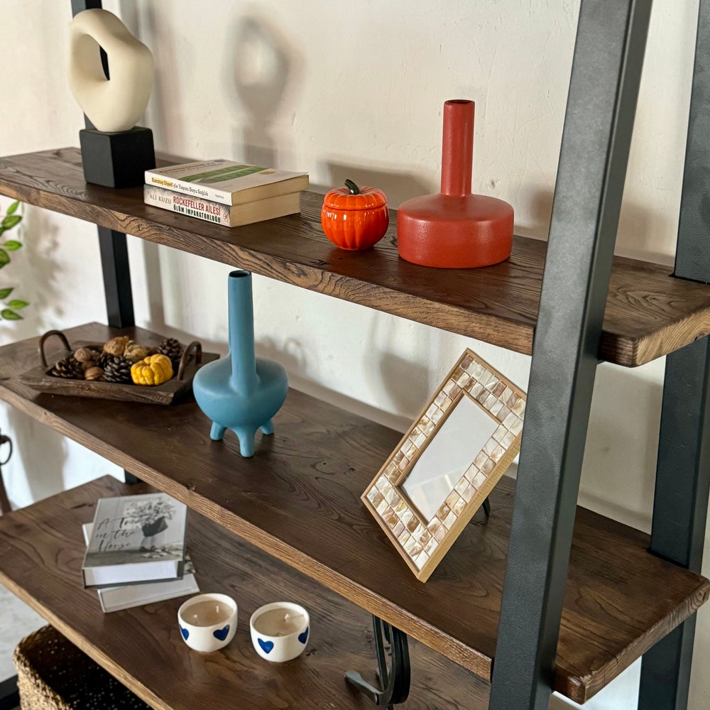 Industrial Shelving Unit Large, Unique Wood Metal Shelving Unit, Tall Shelving Unit Rustic