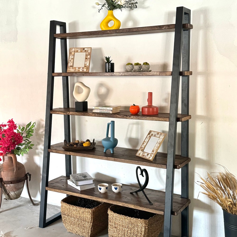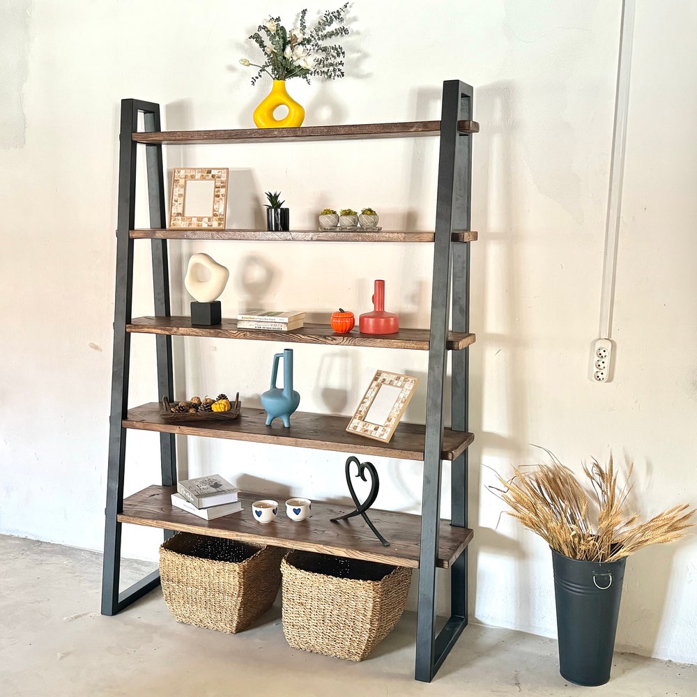 Industrial Shelving Unit Large, Unique Wood Metal Shelving Unit, Tall Shelving Unit Rustic…
