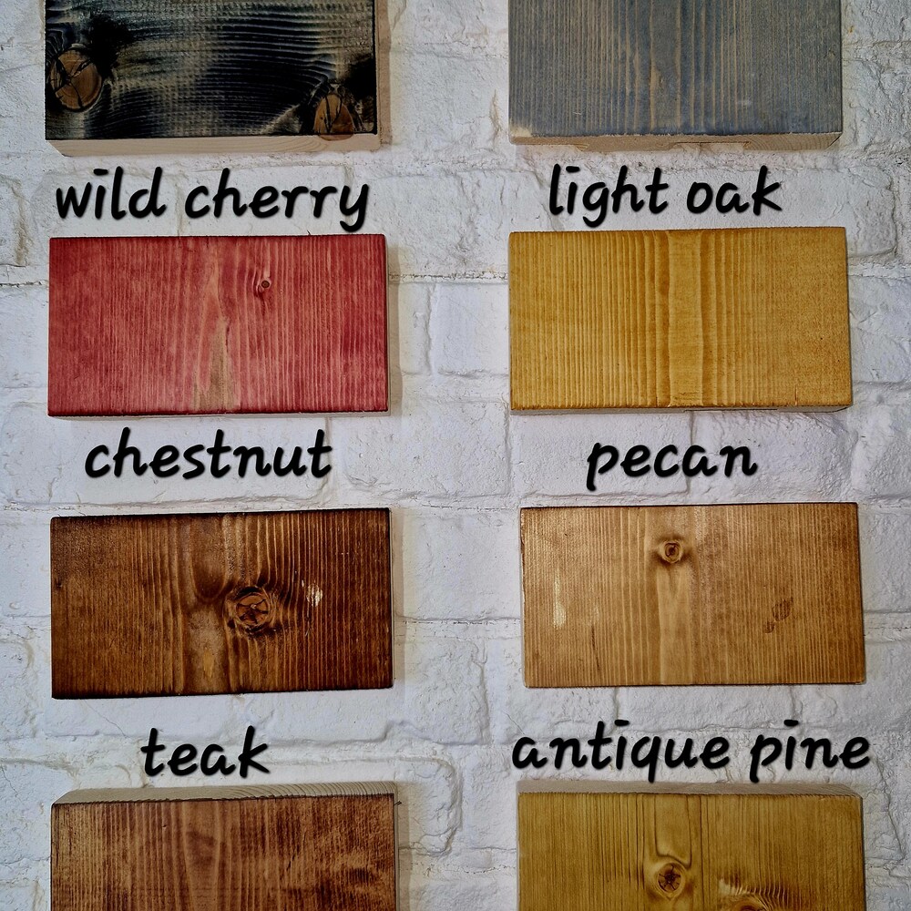 | Colour | Light oak, medium oak, dark oak, natural oak, walnut, mahogany, teak, cedar, drift grey, black ebony, chestnut, pecan, antique pine, wild cherry, terra, rosewood |