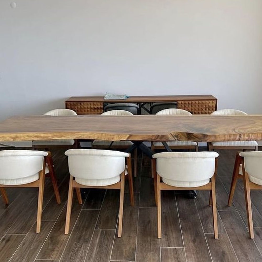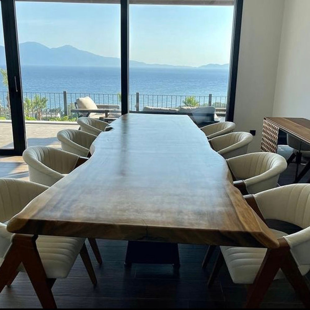 This vibrant edge dining table will decorate the places where you will have happy moments with your family and loved ones. The unique visual air and scent of natural wood will add aesthetics and quality to your home, office and living spaces. If you want to add nature to your life. Contact us!!!