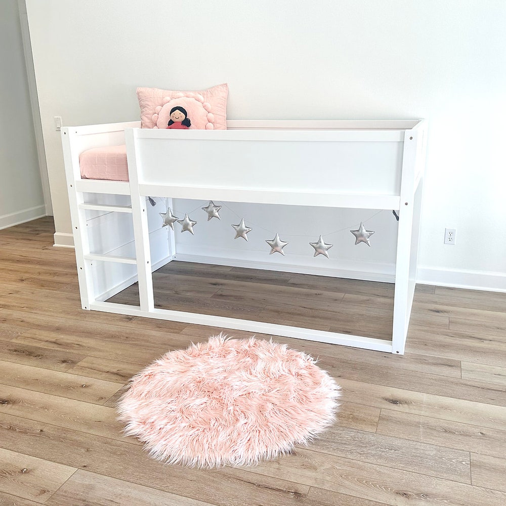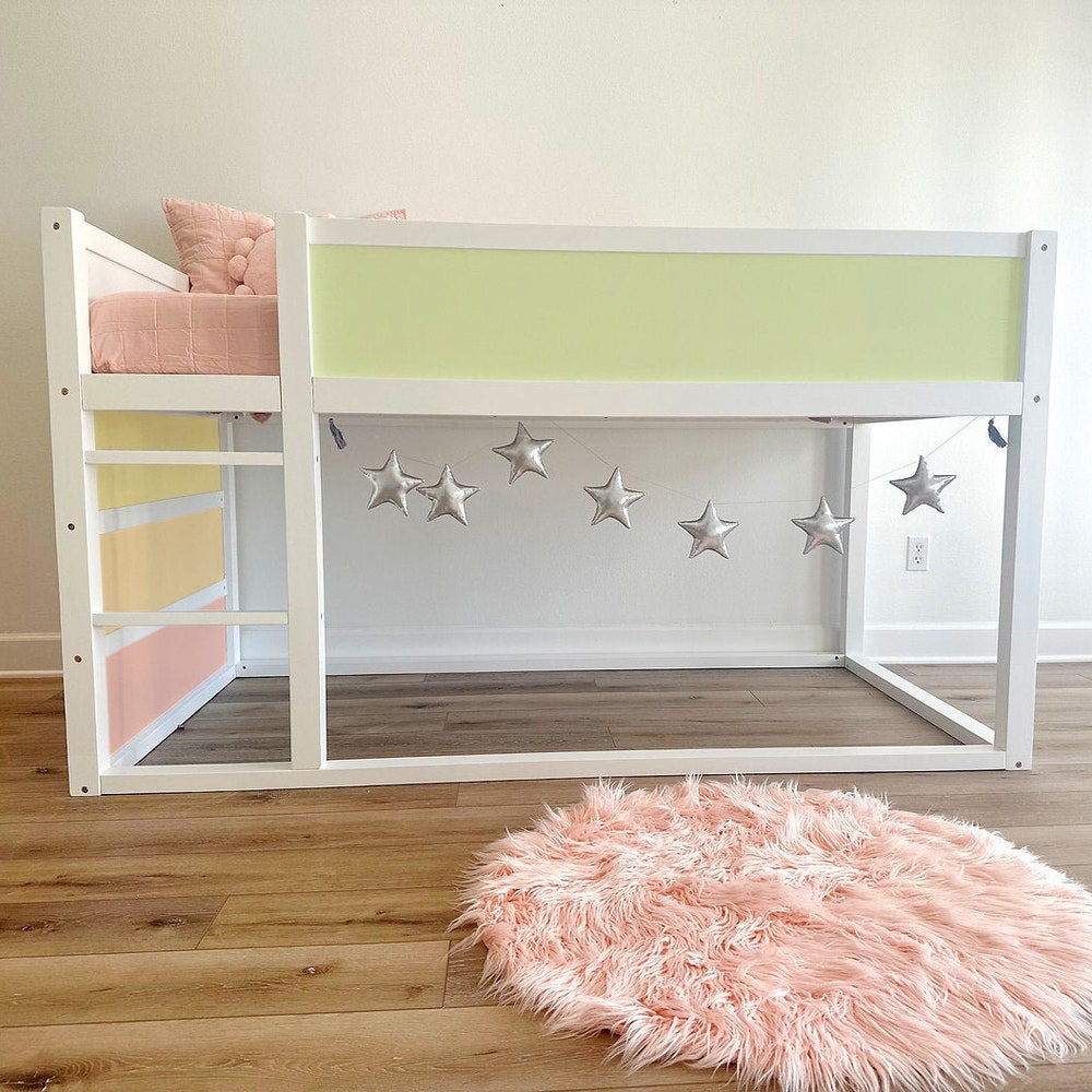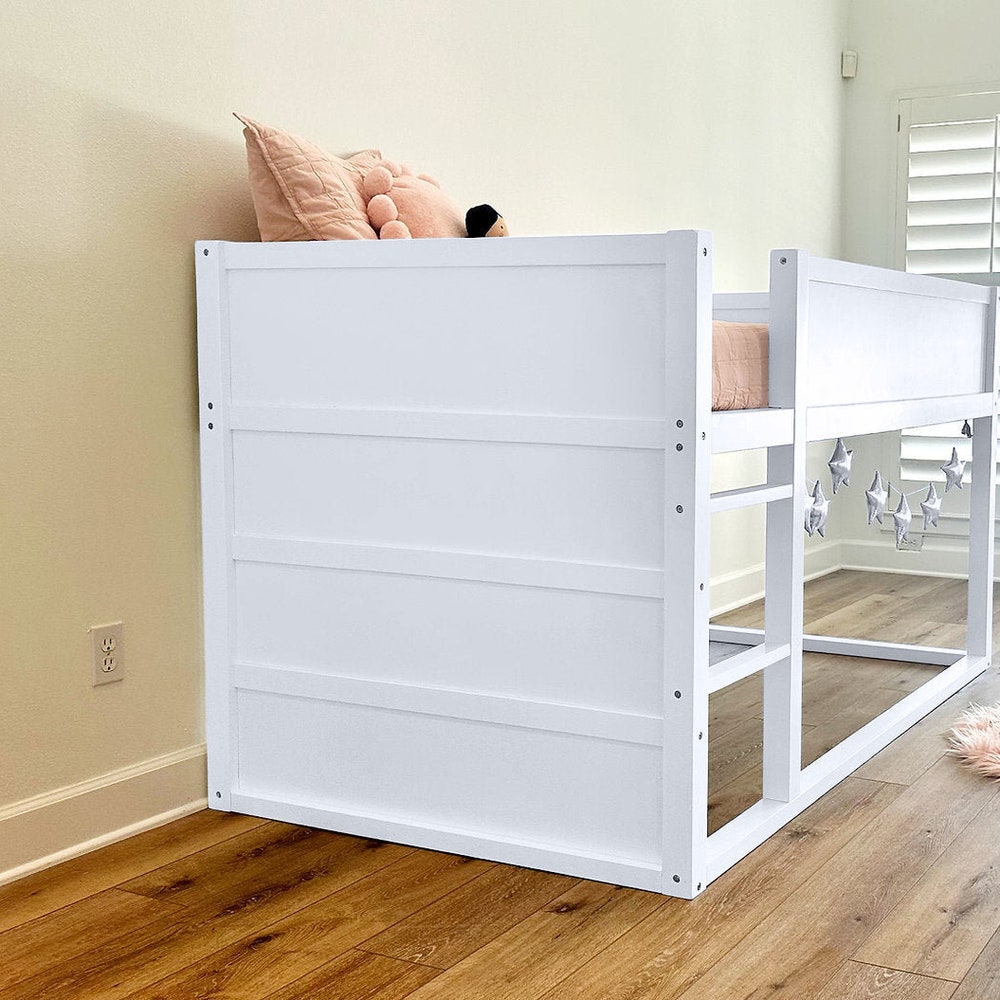 Featuring a sleek and modern design, the Ivy Twin Loft Bed boasts a sturdy and durable frame made from solid wood. The guard rails and side panels are made from mdf to prevent any warping. The low loft bed opens up plenty of floor space for a fun new fort. This feature is especially useful for families who want to maximize space in a smaller bedroom or for kids who love the excitement of sleeping in a loft bed.