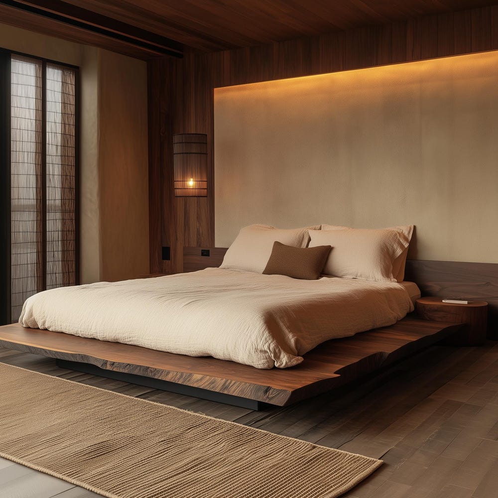 Bring quiet beauty and sculptural presence into your space with this handmade, artisan-crafted platform bed, built from solid walnut wood and designed to elevate your bedroom through simplicity and material honesty. Inspired by traditional Japanese furniture and modern minimalist architecture, it features a floating live edge walnut base, making each piece one of a kind.