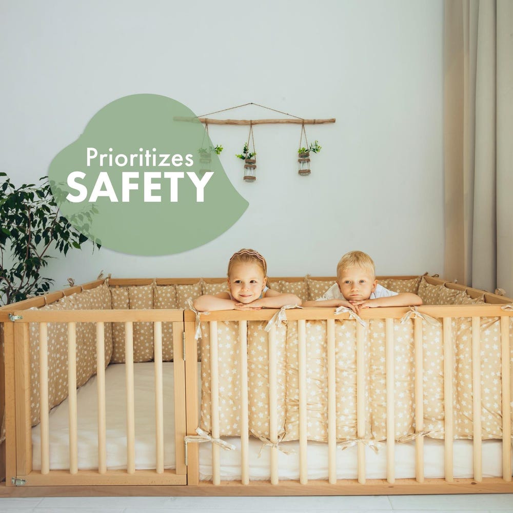 The Goodevas playpen is a safe and fun space where children can explore and play at their own pace. Inspired by Montessori principles, this playpen allows little ones to understand their physical boundaries and respond to their movement needs. Promotes free movement and encourages independent play. Designed with safety and development in mind, it provides the ideal environment for your baby’s development.