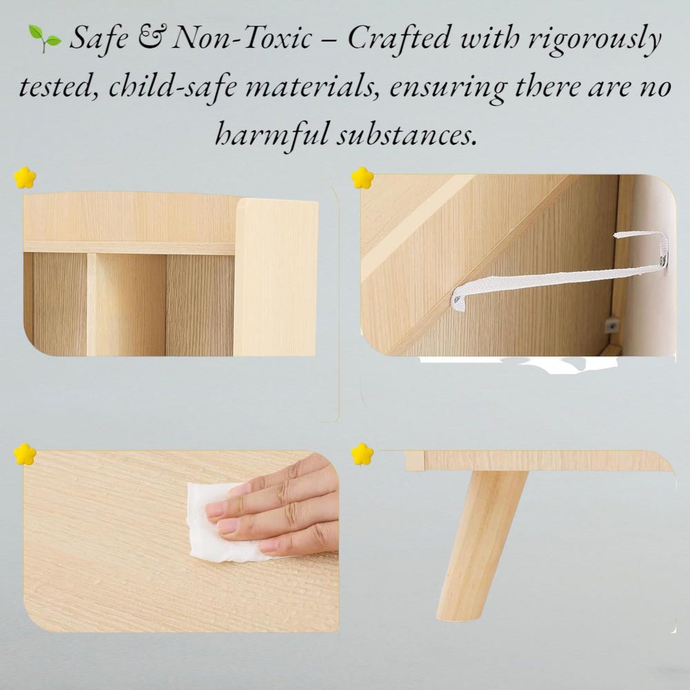 📚 3-Tier Storage + Spacious Top Shelf – The open display design allows kids to easily reach their books and toys while the top shelf provides extra space for decorative items, stuffed animals, or keepsakes.