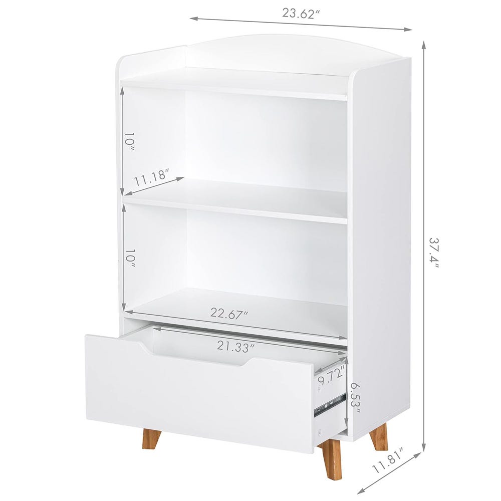 Crafted from durable wood in a sleek white finish, this nursery bookshelf blends well with any room decor. Its compact yet roomy design offers excellent functionality without taking up too much space.