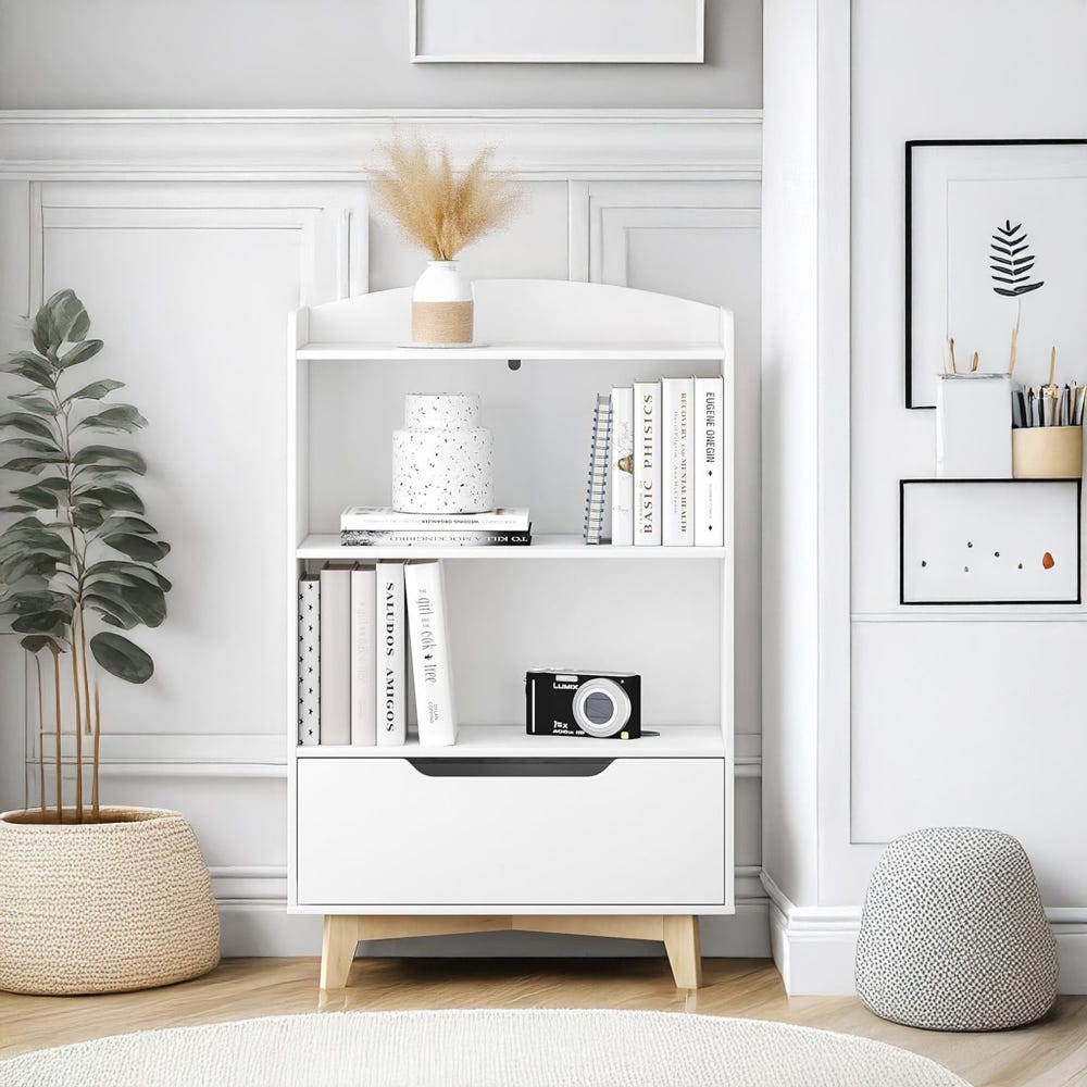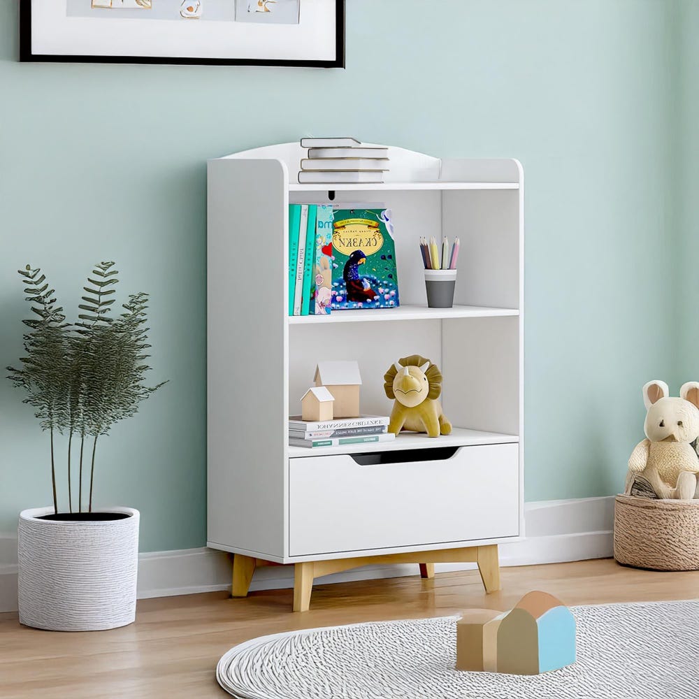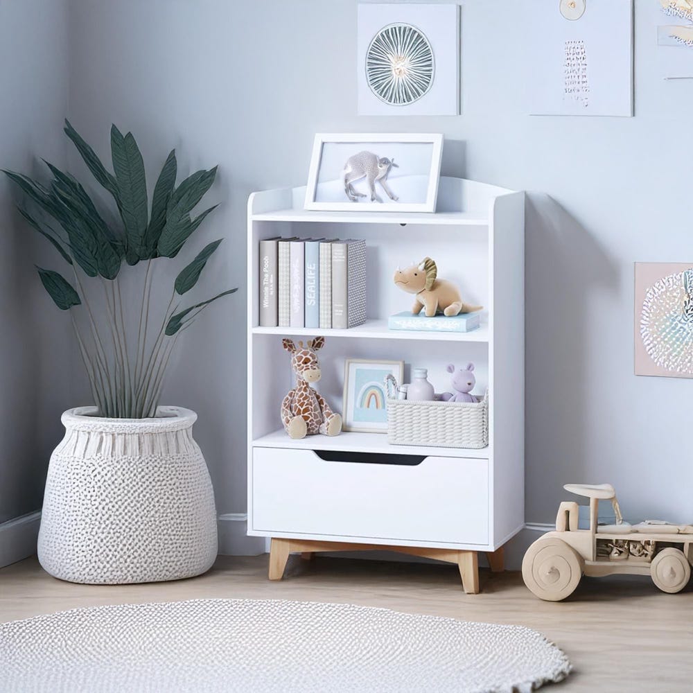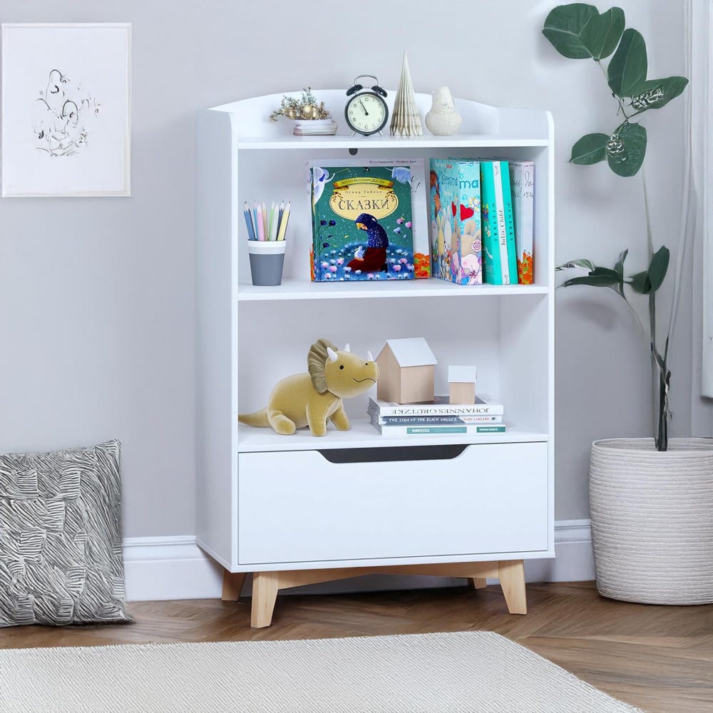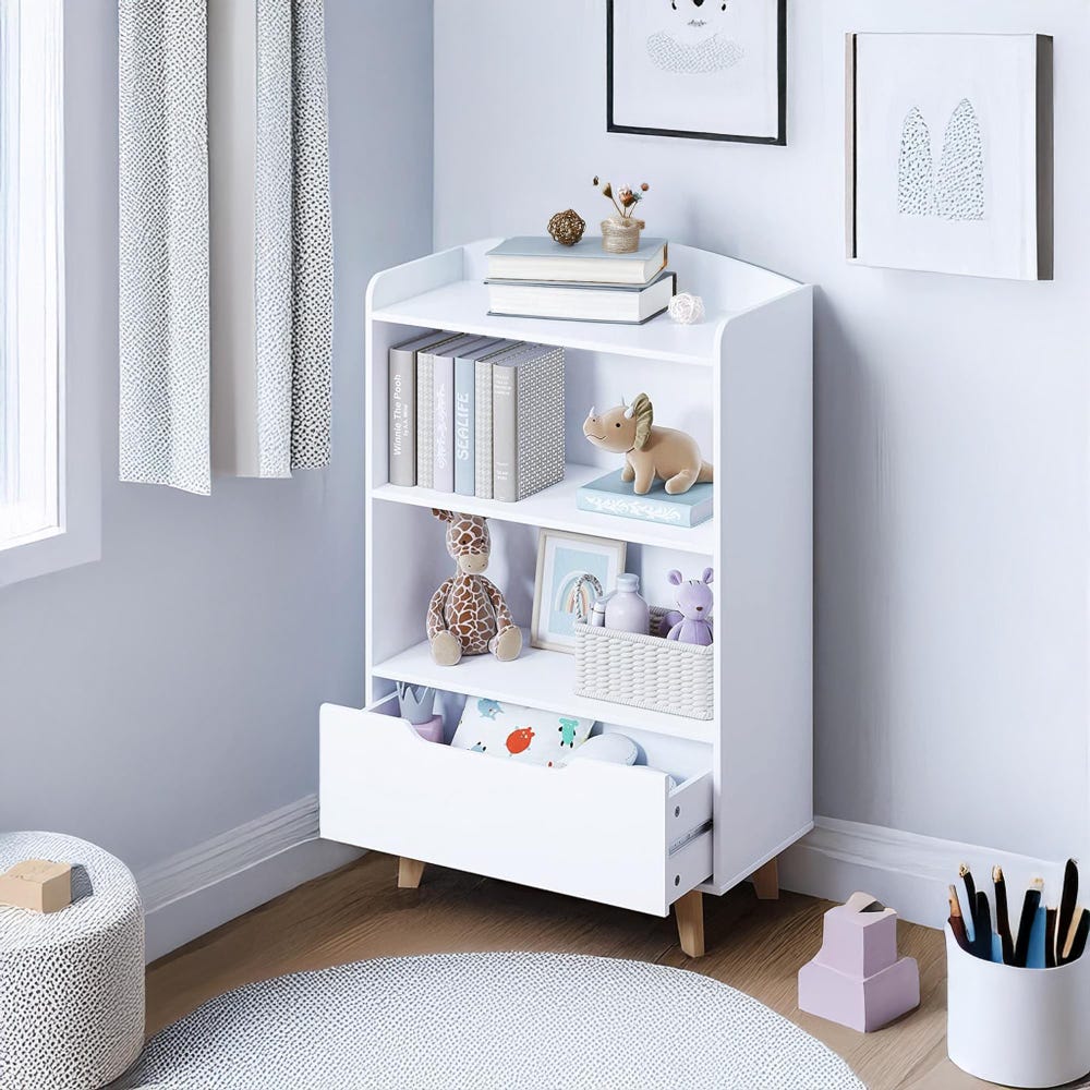 Kids Bookshelf With Storage and Drawer | Montessori Bookshelf | Wooden Toy Storage Organizer for Kids Room or Nursery