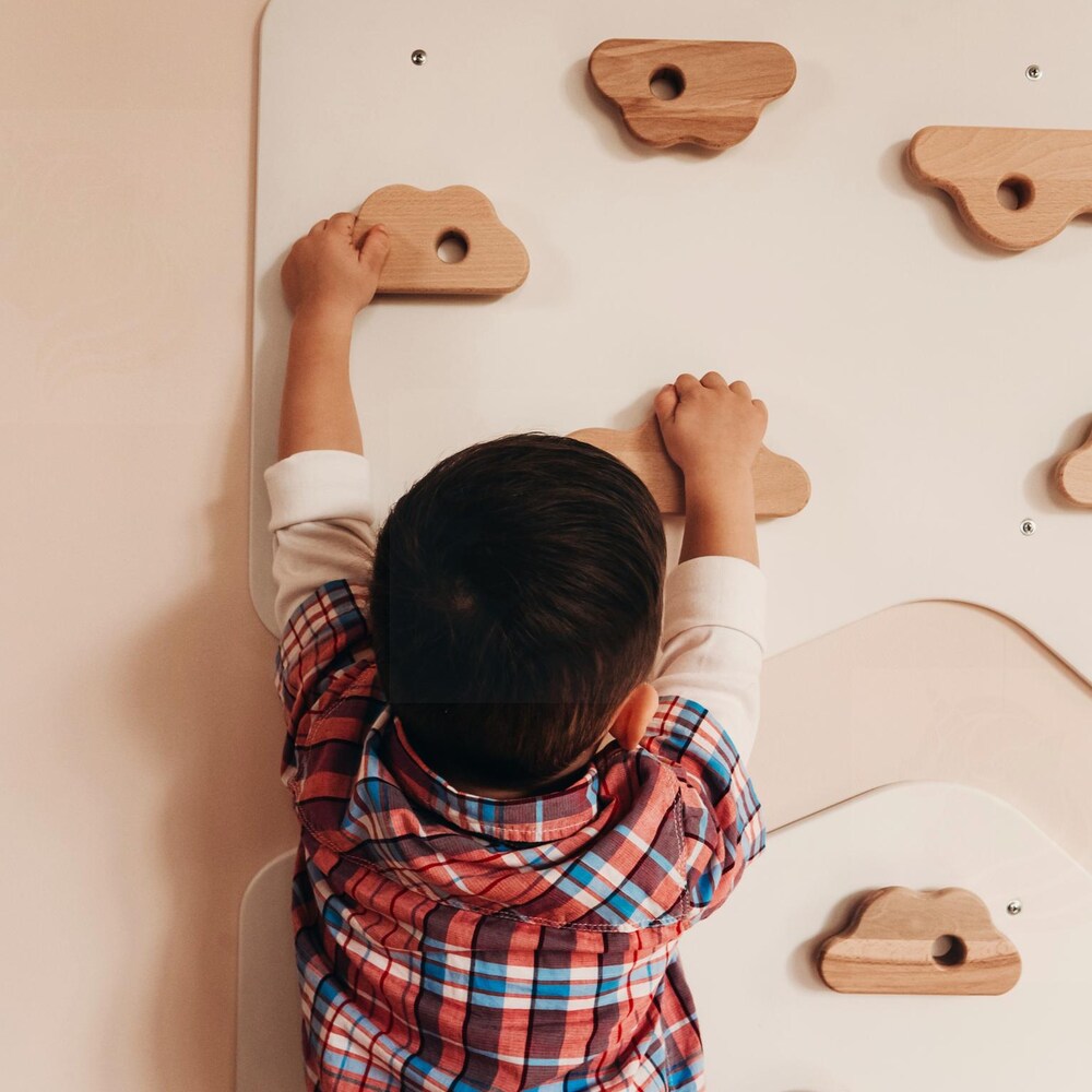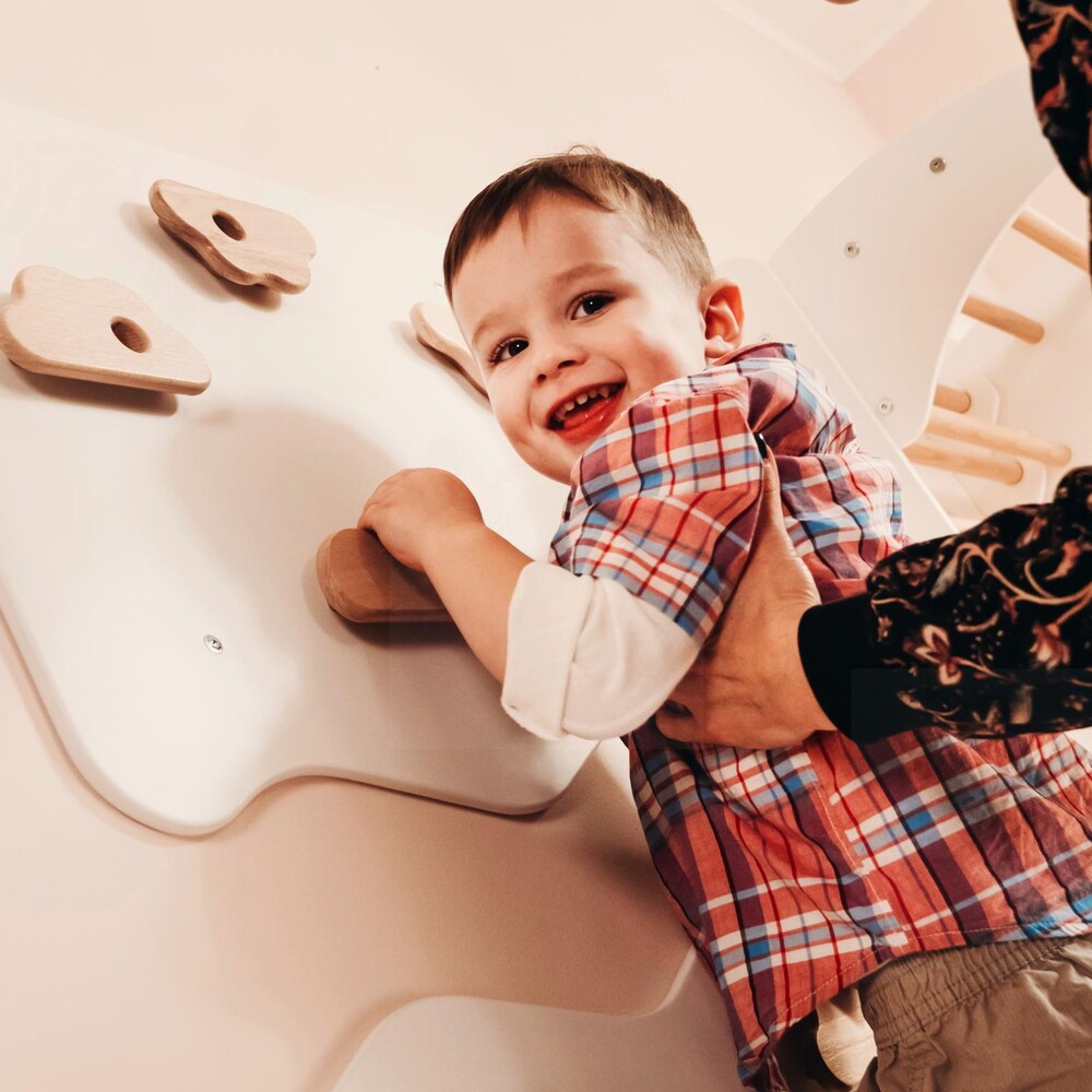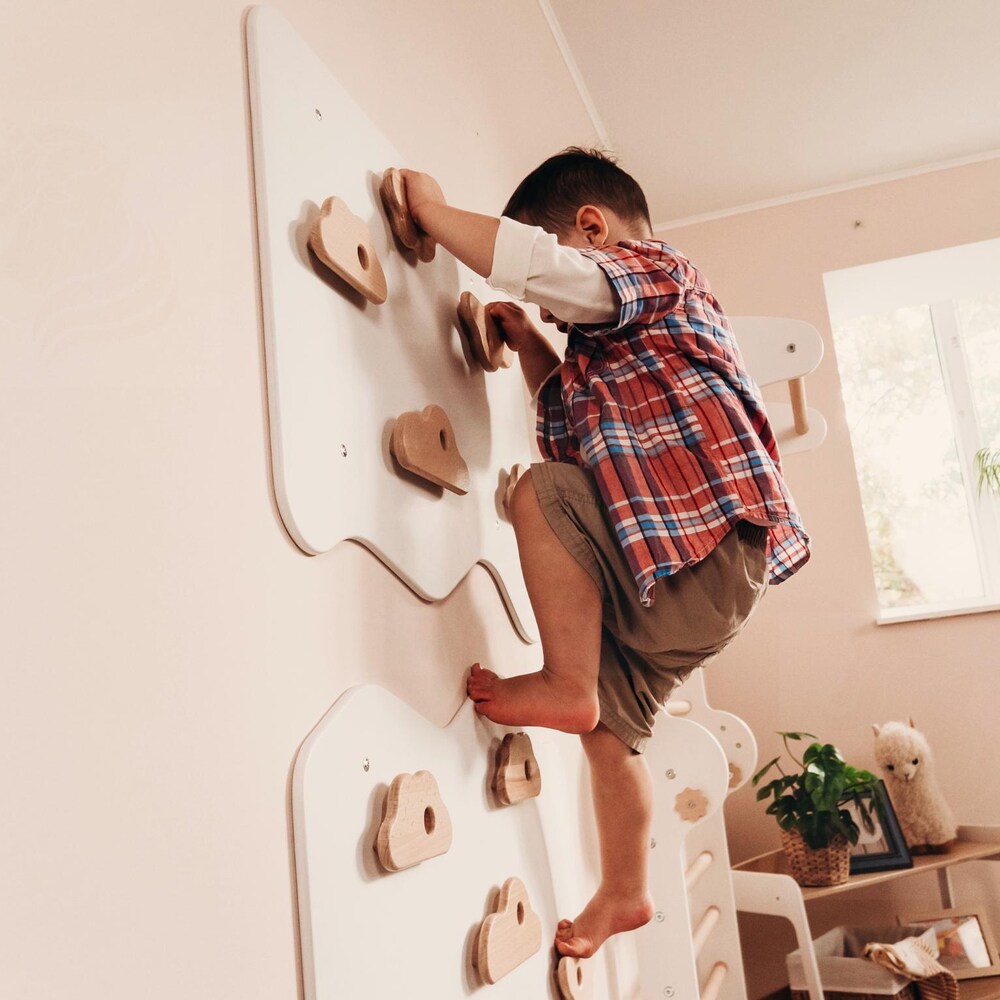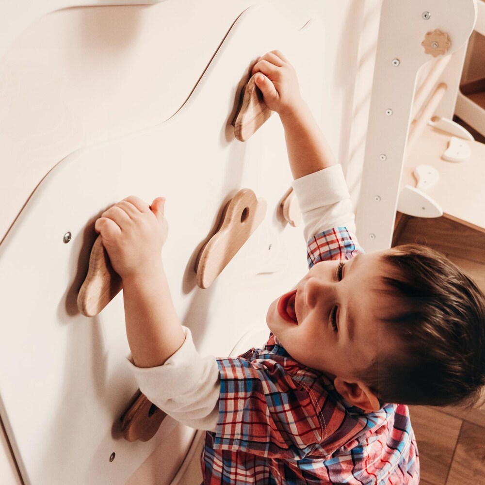 Kids Indoor Climbing Wall – Natural Wood and White Wooden Play Panel for Playroom
