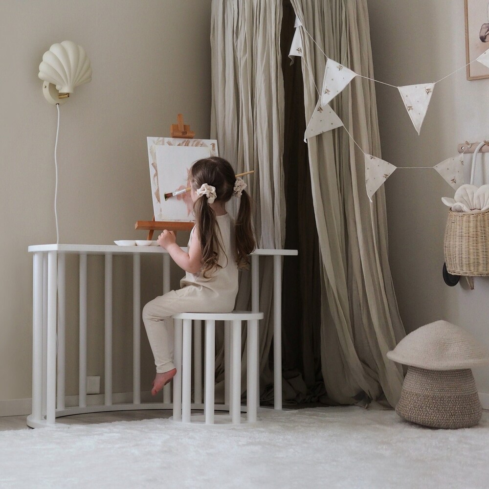 When used as a goal, LUOTO helps to develop children’s hand-eye coordination and supports diverse muscle development. As a workstation with the LUOTO climbing arch, the two create a perfect setup for activities such as crafting and drawing, which are great for developing your child’s fine motor skills, creativity, and concentration. With its many functions and carefully crafted streamlined design, the LUOTO stool is a product that transforms and adapts to new purposes time after time.