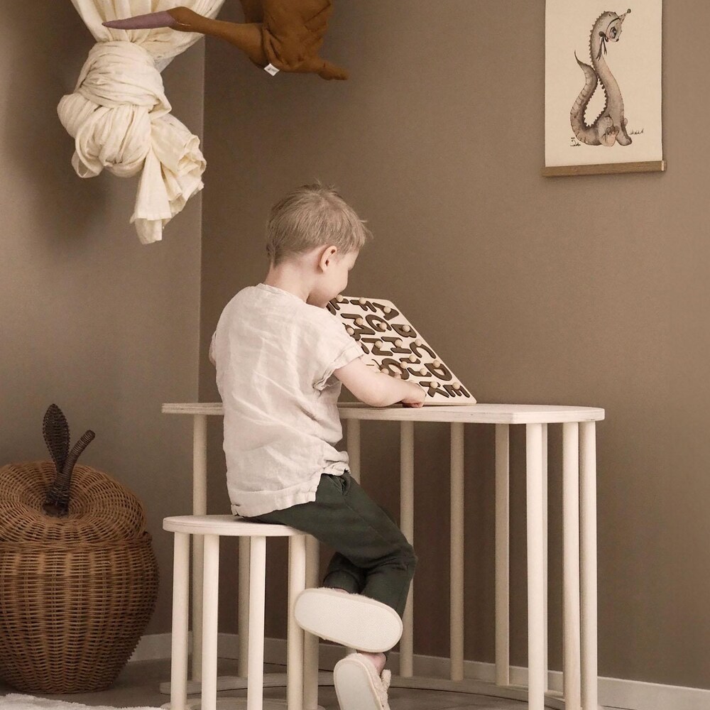 LUOTO stool is a versatile companion for our beloved LUOTO climbing arch. Together, they create a beautiful workstation that is ideal for 6- to 11-year-old children, but that’s not all. Flip it upside down, and it transforms into a goal for throwing balls, adding an exciting element of active play to your child’s routine. Like its namesake climbing arch, the LUOTO stool is designed to complement any room of the home as a timeless piece of furniture instead of being suitable only for the kids’ room. Besides working as a stool and goal for children, the abstract composition of LUOTO allows it to be used for example as a small side table, plant stand, or bedside table.