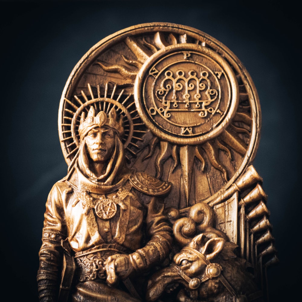 Hand carved oak statue of King Paimon – a powerful demon spirit from the Ars Goetia. This Goetia oak figurine is perfect as witchcraft decor, occult altar setups, spirit work, or as a demon figurine for collectors of infernal and pagan art. Crafted from solid oak with a matte natural finish, it brings presence, symbolism, […]