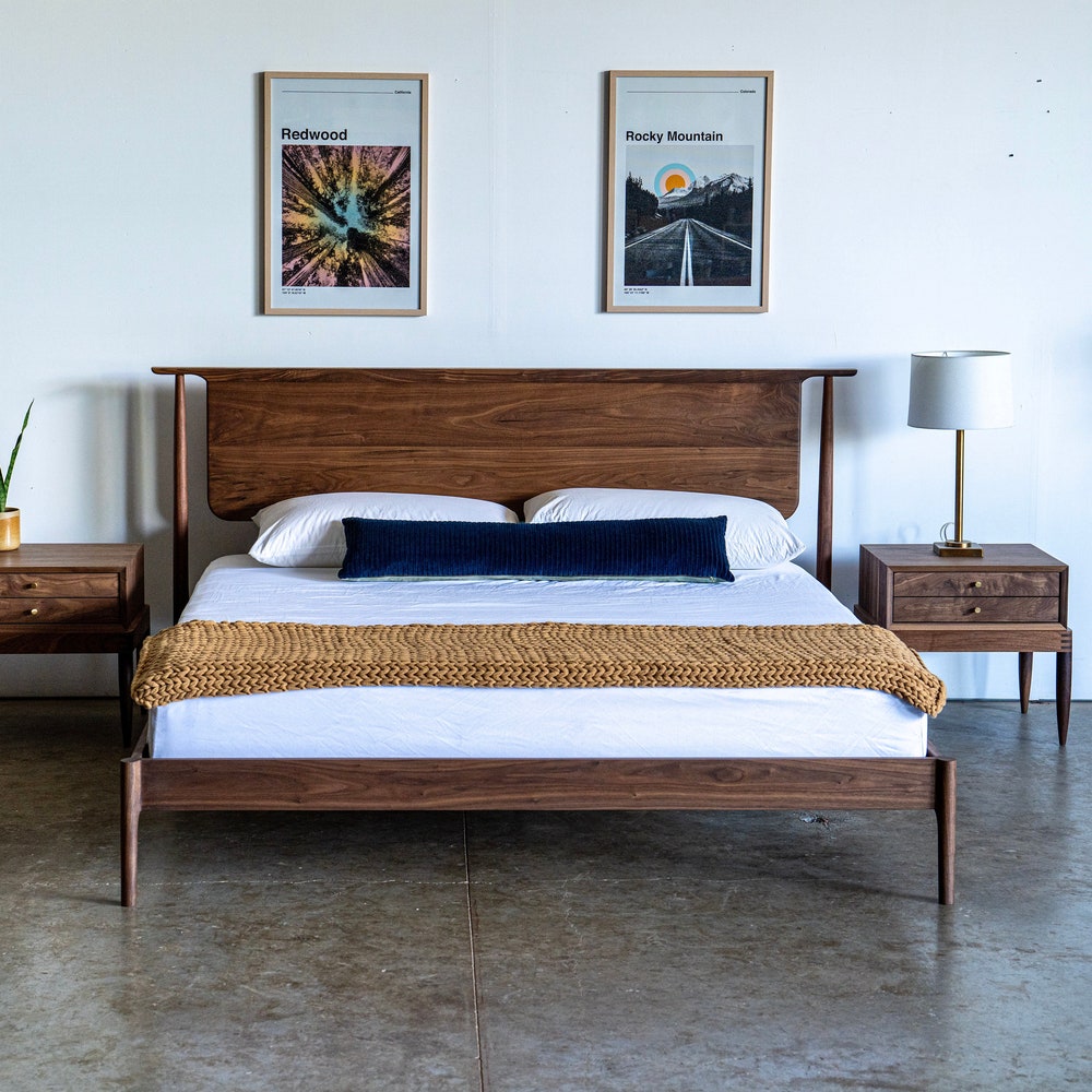 King Size Platform Solid Walnut Bed / Bed No.5 / Mid century Modern Solid Wood Platform Bed Frame