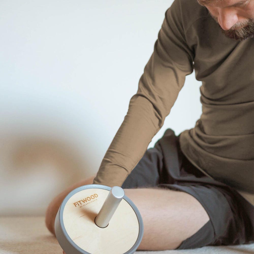 The disc of the exercise wheel is made of sustainably sourced birch plywood. The handles are made of anodized aluminium. The process of anodizing the aluminium improves the durability of the aluminium surface.