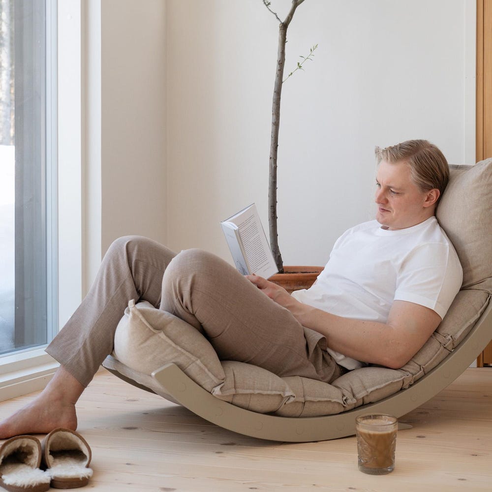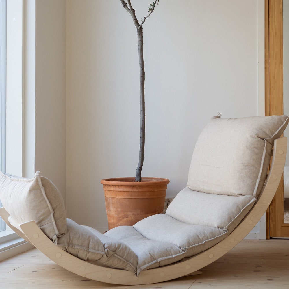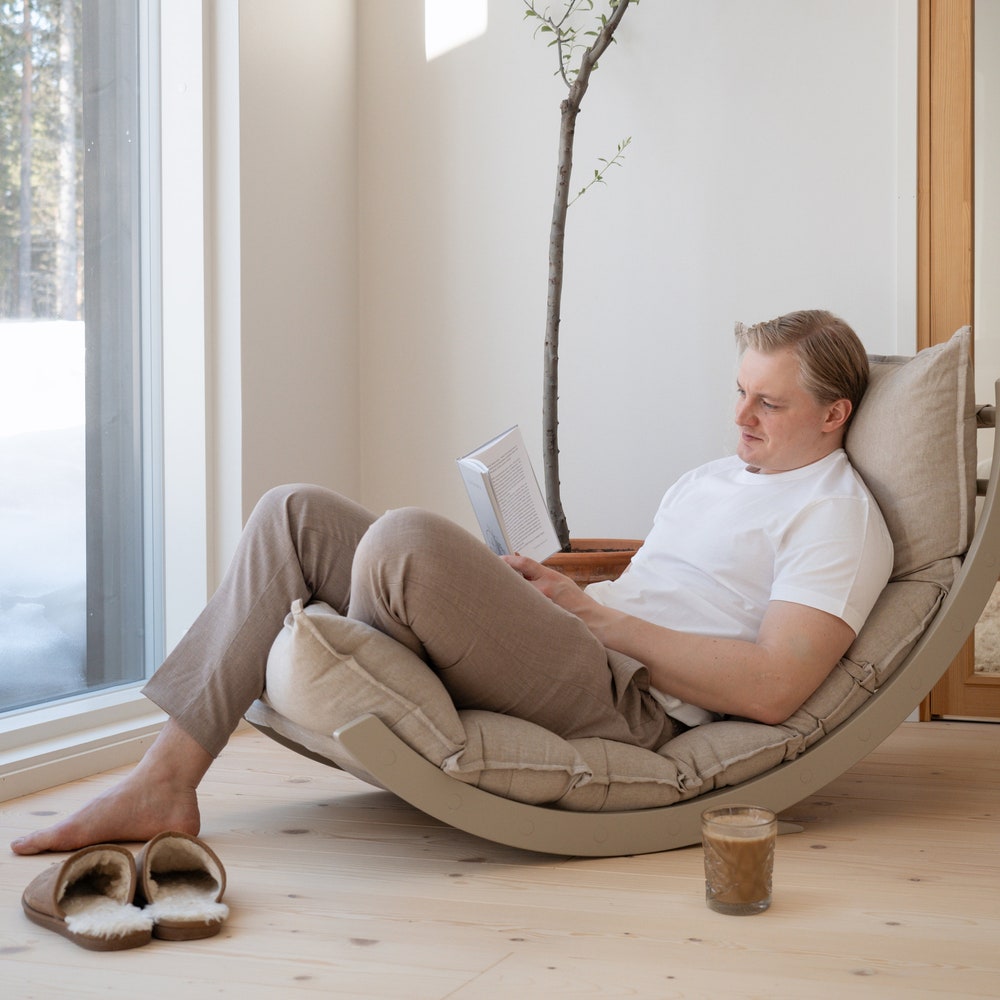 The gentle rocking motion has been shown to have numerous calming and relaxing benefits, such as reducing stress and anxiety, improving the quality of sleep, and enhancing concentration. Whether you like to unwind by delving into a good book, playing video games, binge-watching your favorite series, or knitting, LAAKSO is the perfect cozy spot for doing those things. For the utmost comfort, pair it with our plush OHRA cushion, and uninterrupted relaxation will be guaranteed.