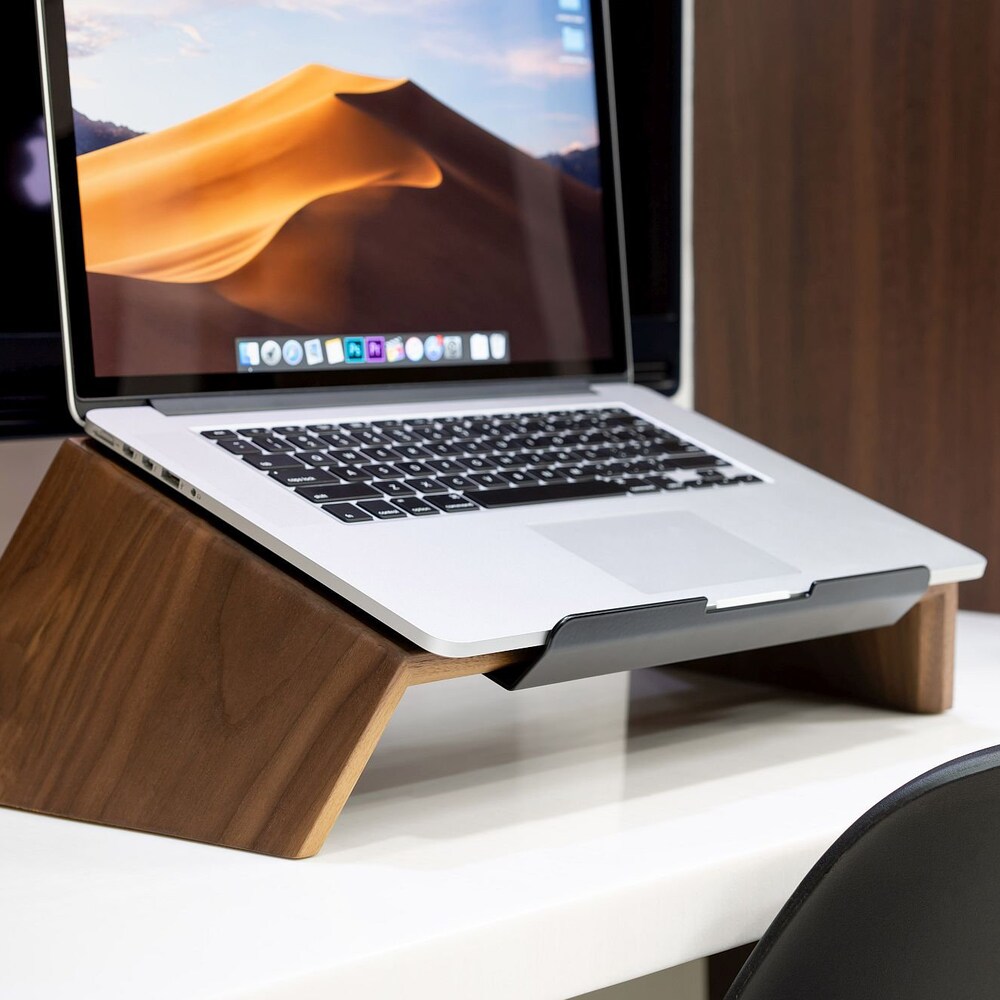The stand elevates your laptop to eye level which makes it an ergonomic solution for your workspace.
