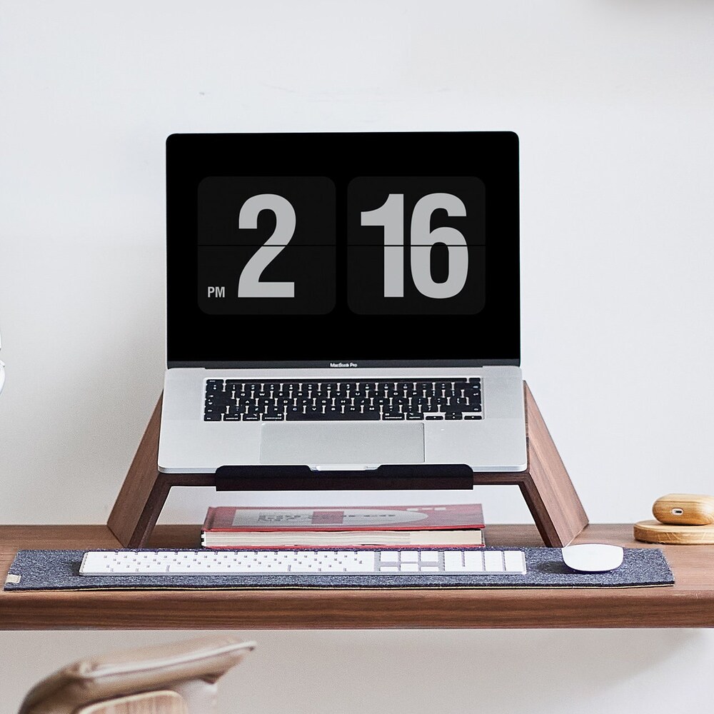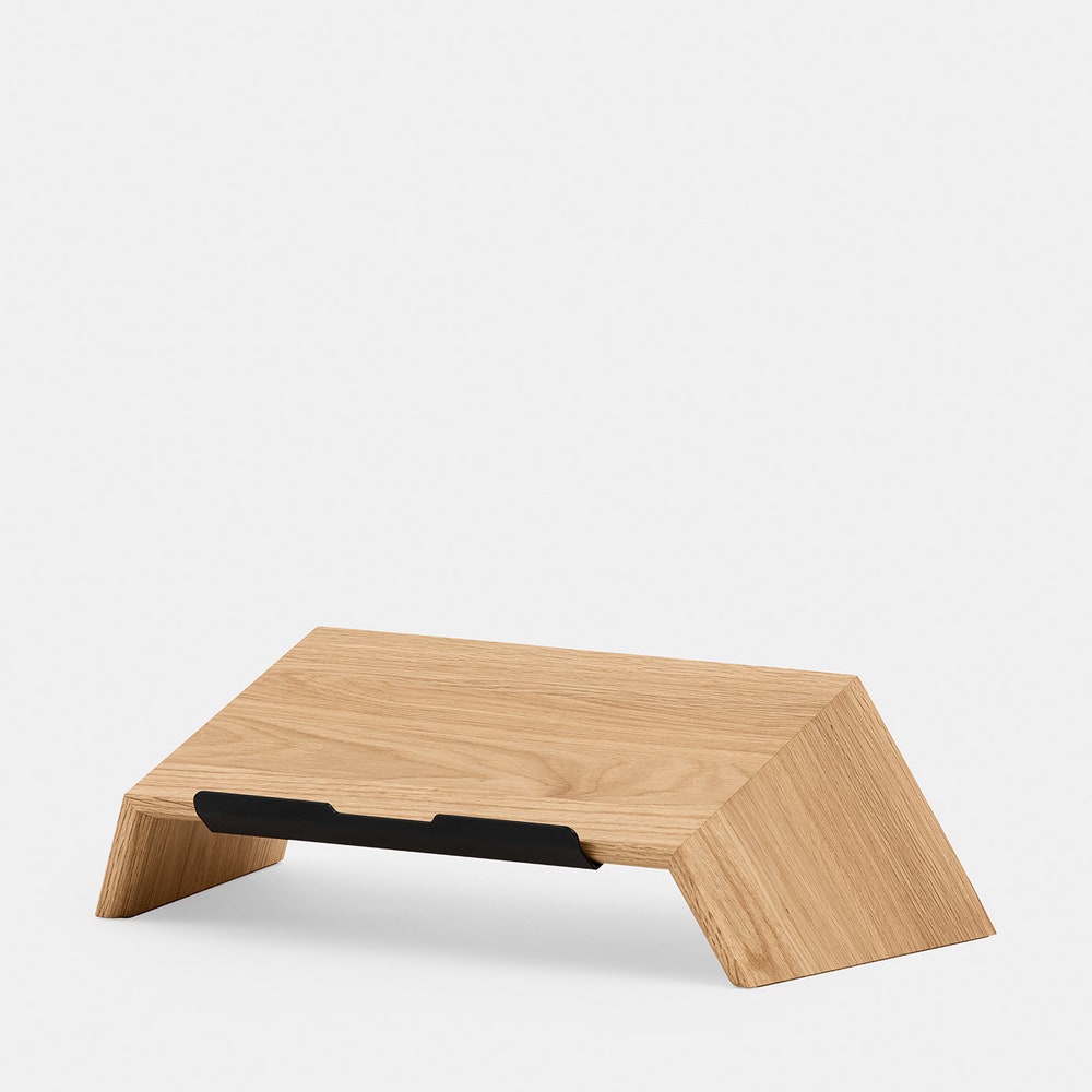 Our wooden Laptop Stand guarantees you comfort and brings your workspace to new ergonomic heights. The stand elevates your device 15 cm to eye level allowing you to straighten your back, preventing the risk of neck and lower-back pain. The stand frees up space underneath your laptop providing extra storage.
