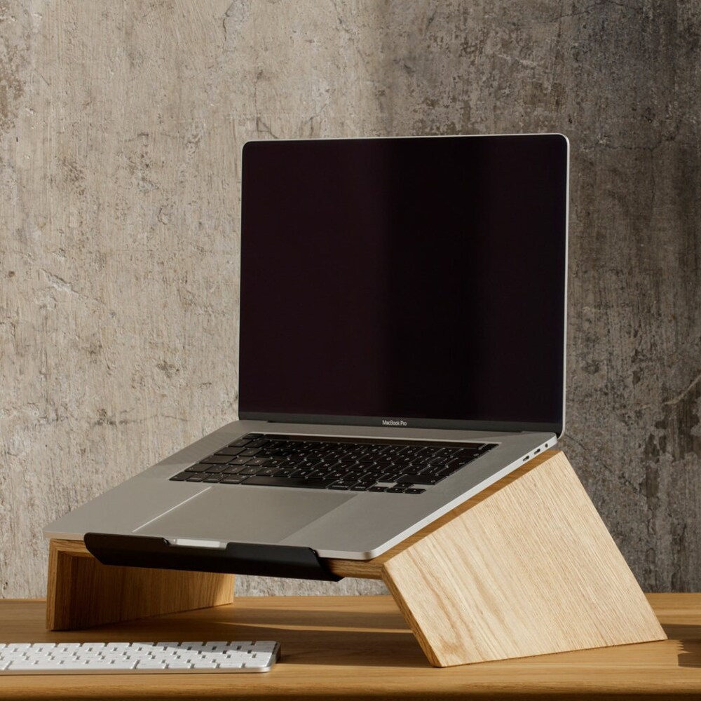 Laptop MacBook Wood Stand Ergonomic Computer Holder, Woodworking Gift, Workspace Desk Accessories, Gift for Men, Office Desk Accessory