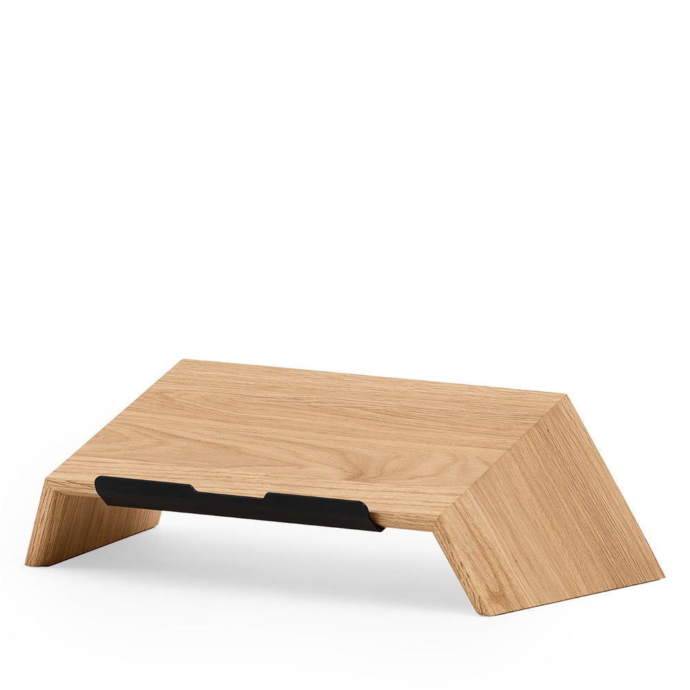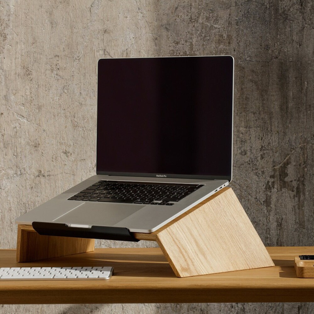 Our wooden Laptop Stand guarantees you comfort and brings your workspace to new ergonomic heights. The stand elevates your device 15 cm to eye level allowing you to straighten your back, preventing the risk of neck and lower-back pain. The stand frees up space underneath your laptop providing extra storage.