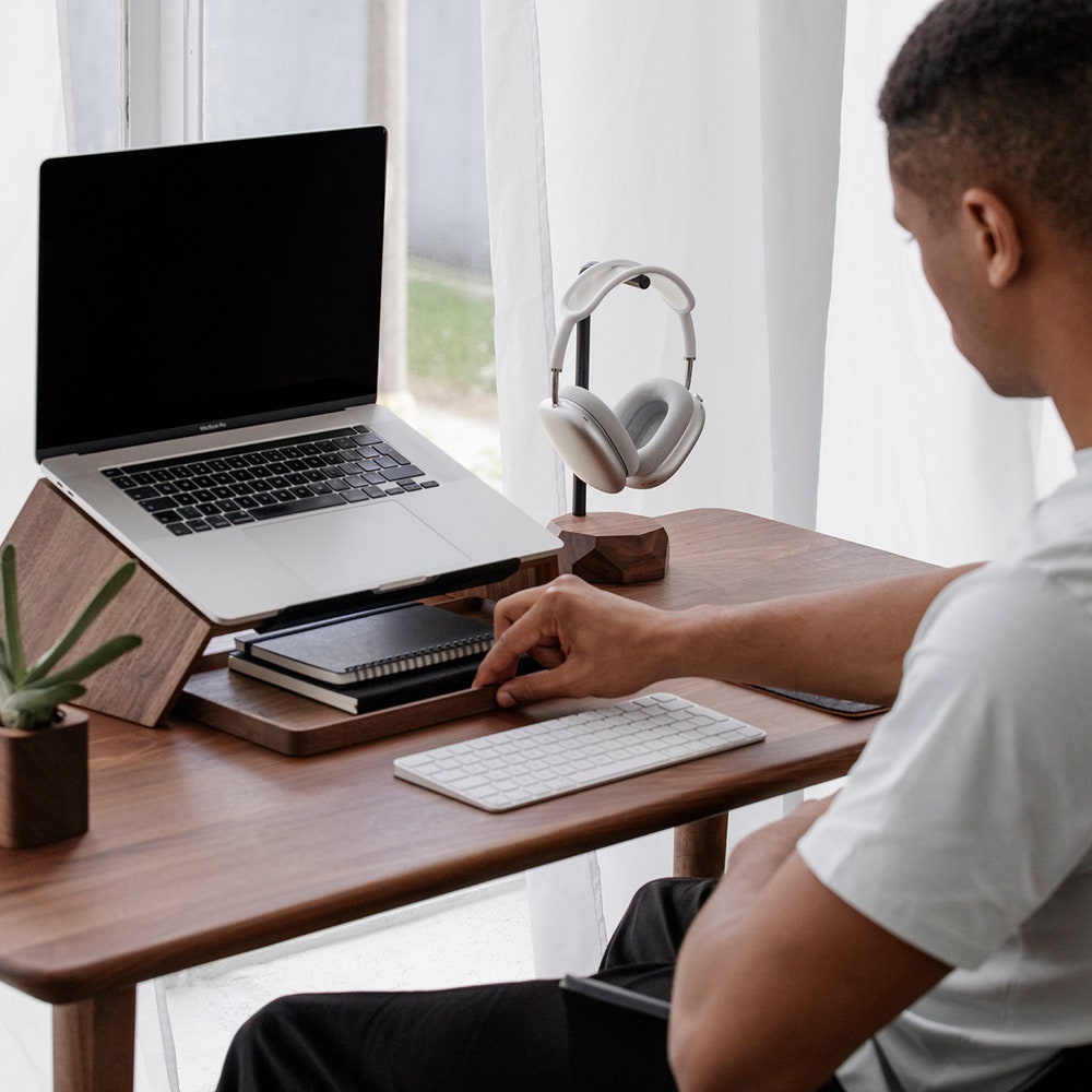 The stand elevates your laptop to eye level which makes it an ergonomic solution for your workspace.