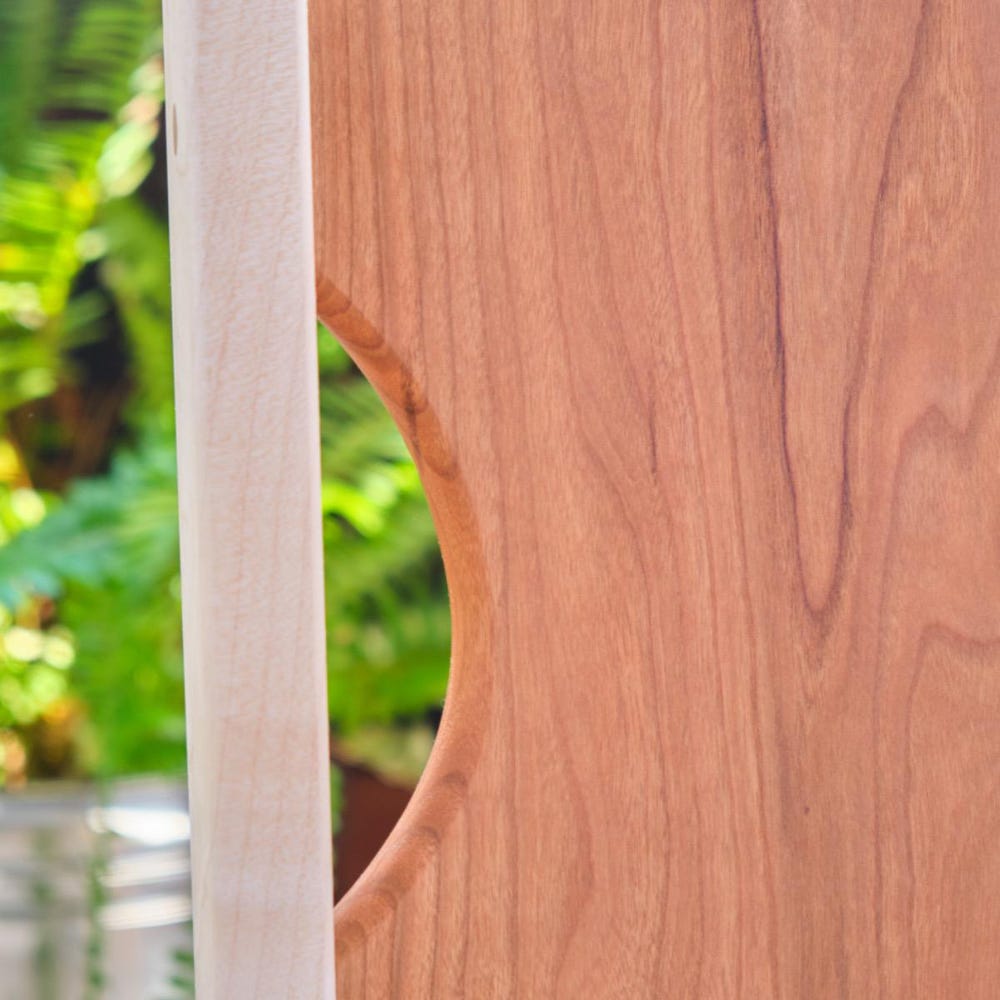 Material: Cherry Hardwood with Maple Accents (skirt, legs)