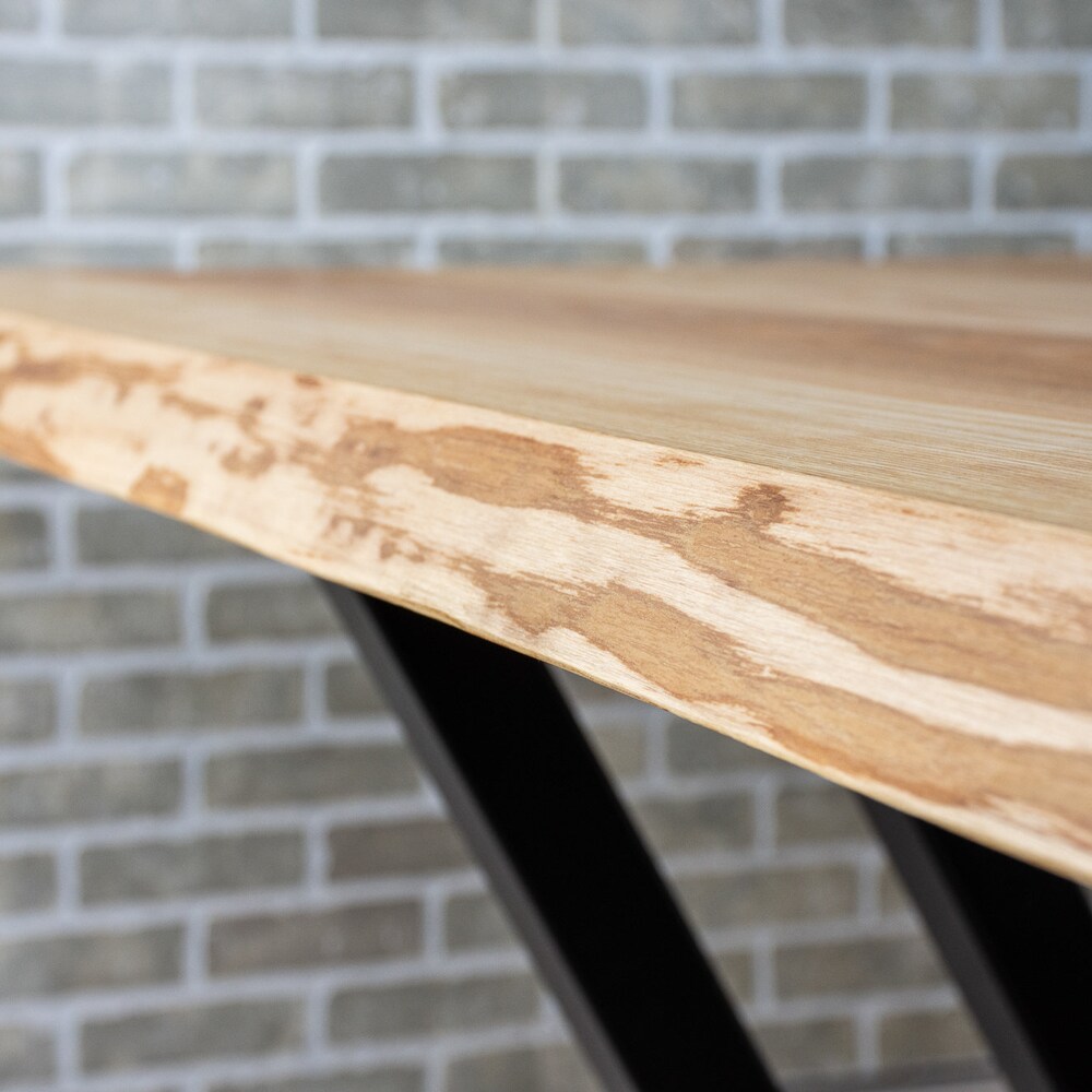 This large live edge ash dining table captures the spirit of industrial design. The natural finish on ash highlights the strong graining and natural coloring of the wood and pairs it with sturdy steel legs. The live edge also highlights the natural edge of the tree it came from to truly celebrate the raw materials that make up this table. We build every table to order so there are many ways to make this table perfect for you.