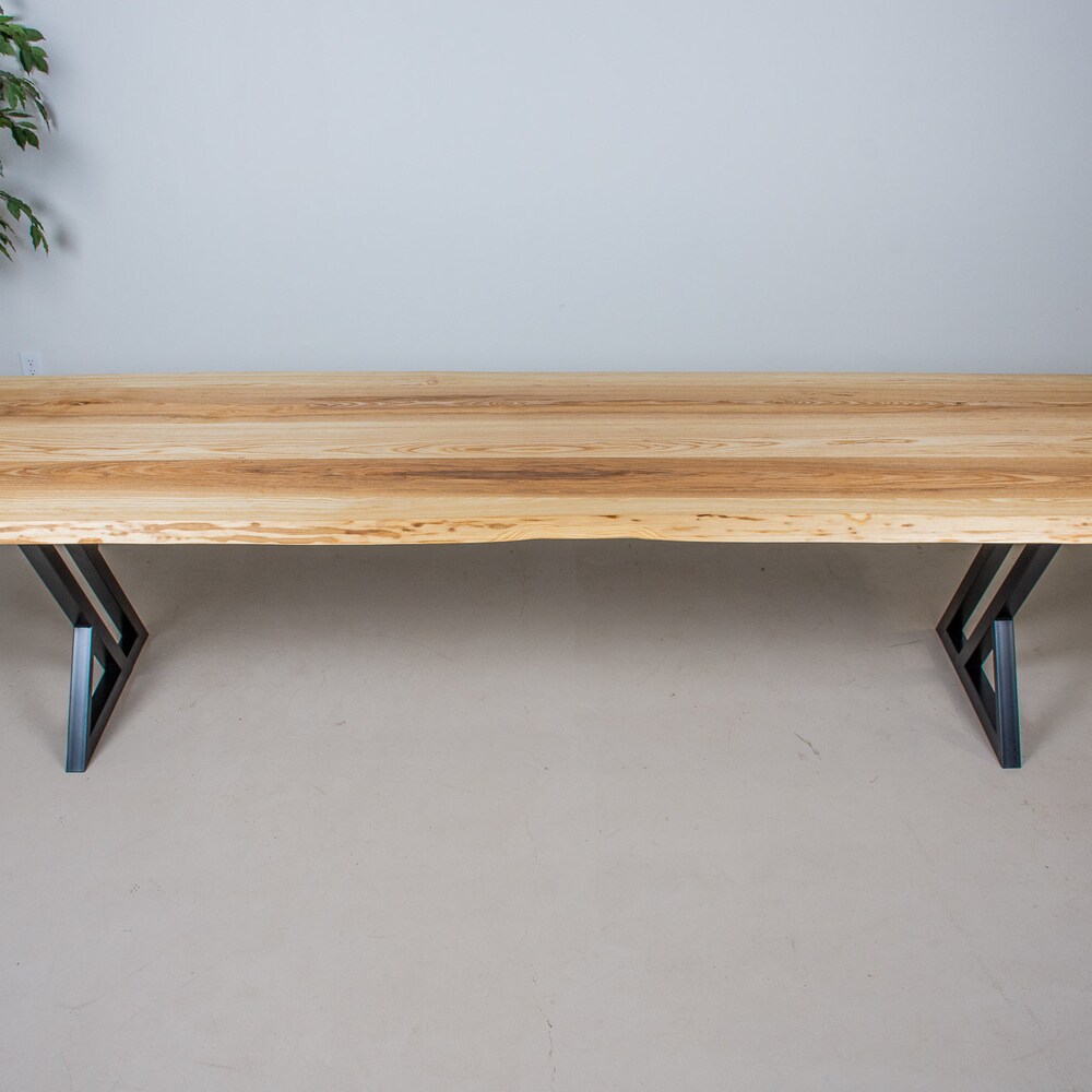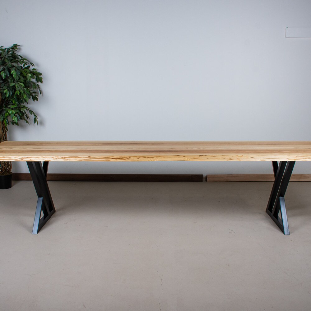 Large Live Edge Ash Dining Table, Long Wooden Dining Table, Natural Wood Table on Steel Legs, Long Live Edge Table, Solid Wood Table Top