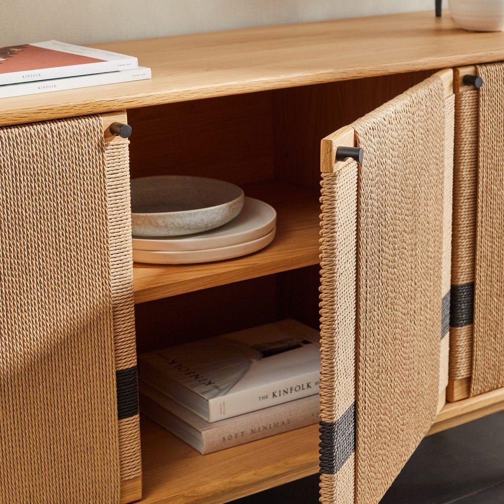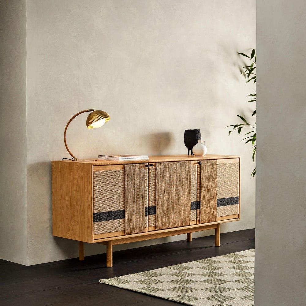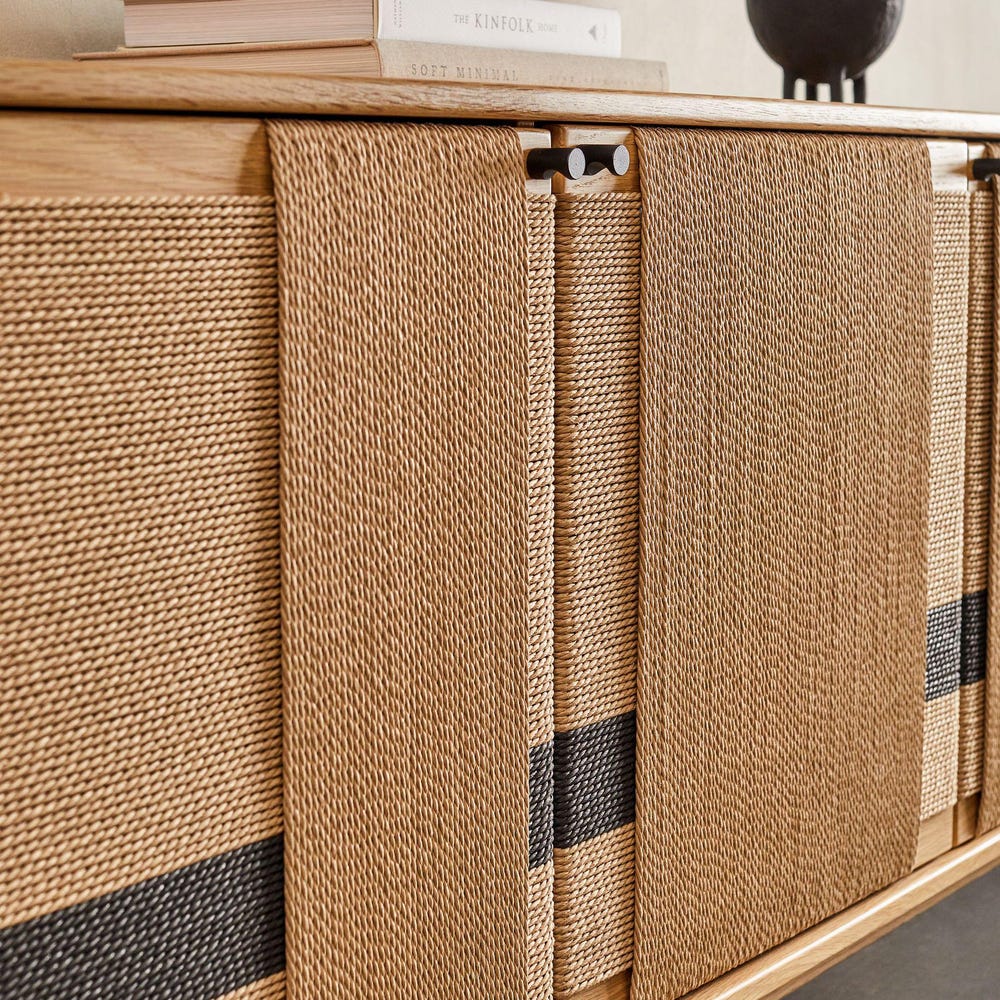 Make a statement with our Large Oak Sideboard, where craftsmanship meets contemporary design. Crafted with a solid oak frame and enhanced with beautiful woven detailing, this 3-door sideboard adds warmth, texture, and elegance to any space.