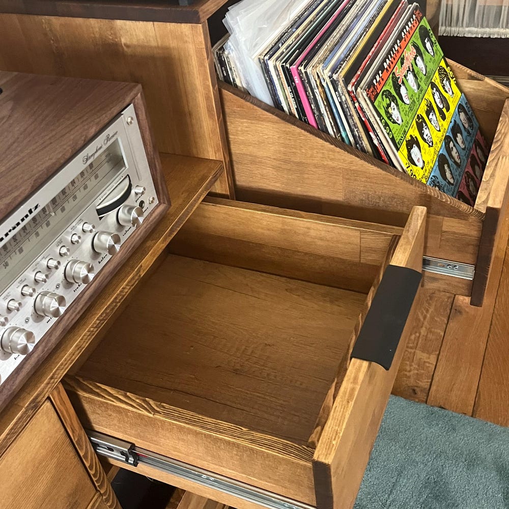 2 in 1 Rack variation, Turntable Stand, Wood Furniture, Handmade Record Player Stand, Industrial Vinyl Table, Media Hifi TV Unit