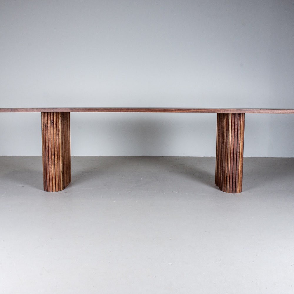 Large Walnut Dining Table, Dining Table for 10 on Fluted Walnut Legs, Mid Century Modern Walnut Dining Table, Reeded Dining Table in Walnut