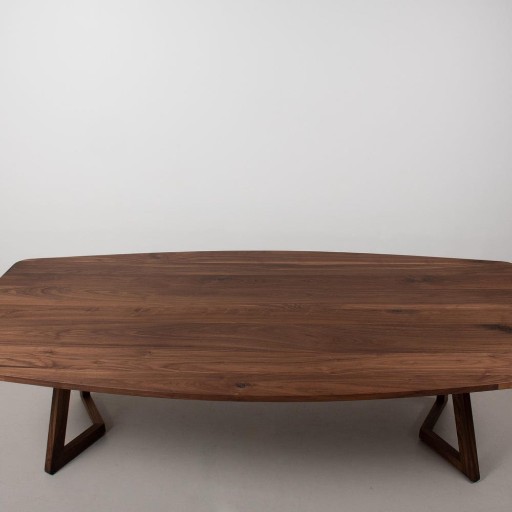 Large Walnut Table, 9 Foot Dining Table with Curved Edge, Solid Walnut Dining Table, Modern Wood Table for Dining Room or Meeting Room