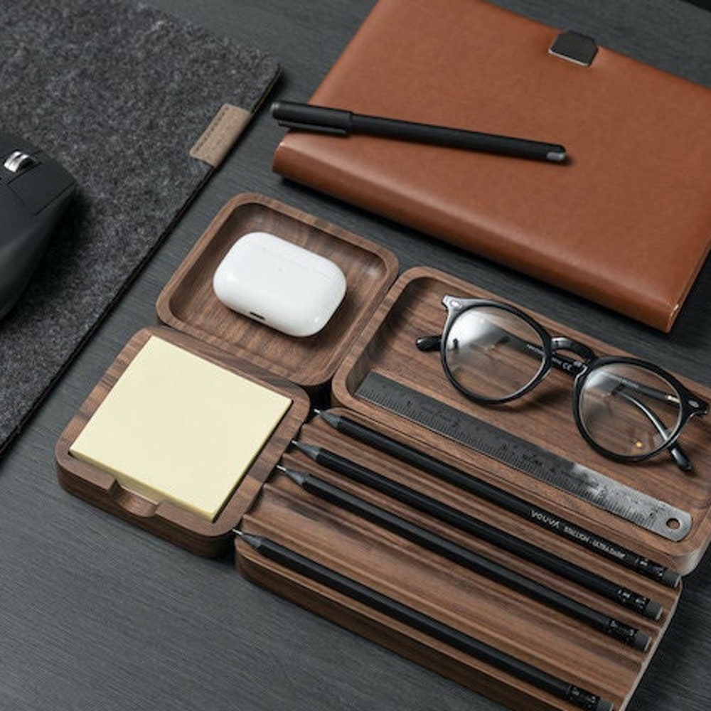 Large Wooden Tray, Desk Organization Set, Custom Wood Desk Organizer, Office Desk Accessories, Home Office, Work From Home, OakyBlocks