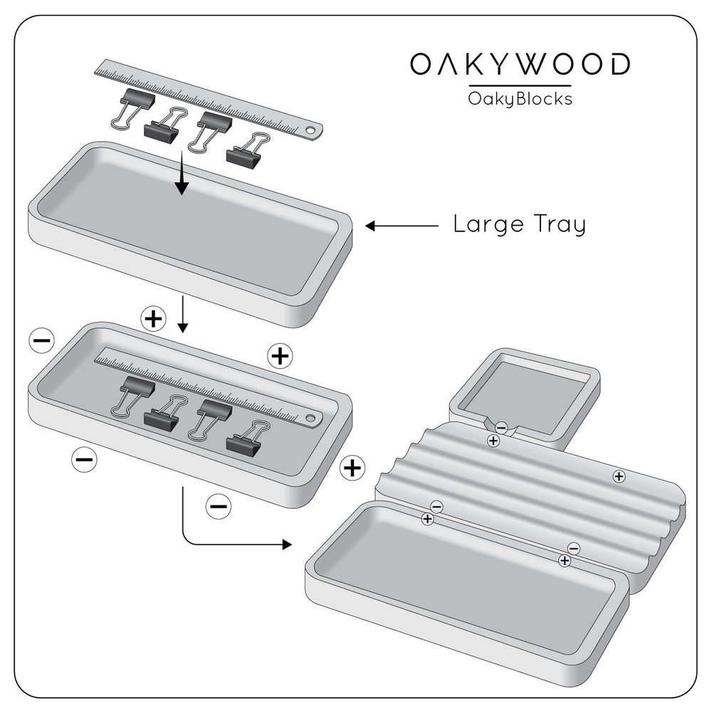 Fitted with magnets, the Large Tray lets you connect it with other OakyBlocks components to create the most convenient setup.