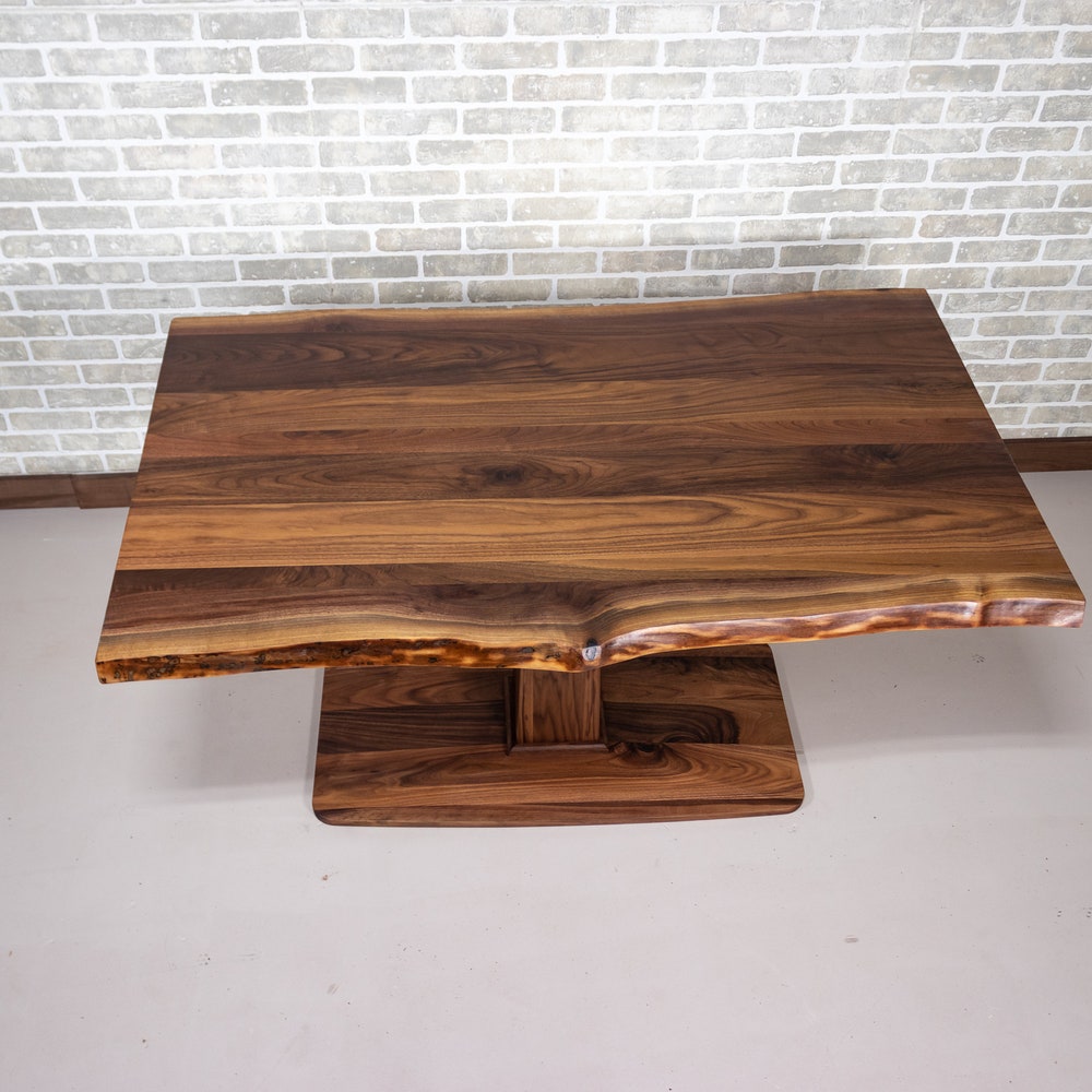Live Edge Banquette Table, Live Edge Walnut Table on Pedestal Base, Live Edge Table with Pedestal, Small Live Edge Pedestal Table