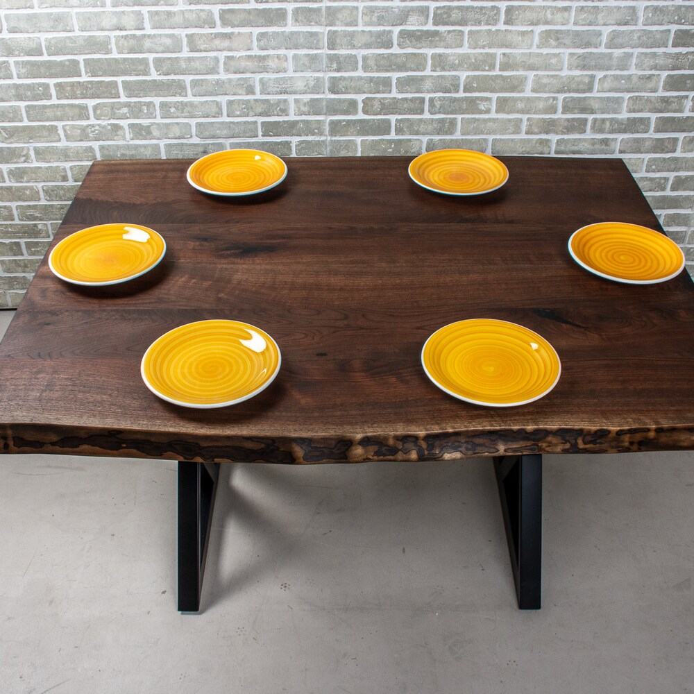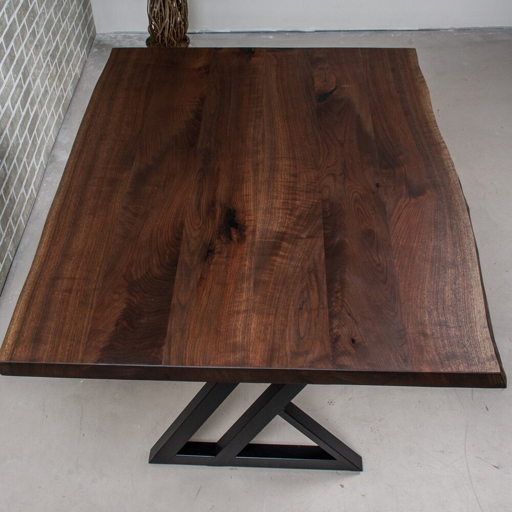 Live Edge Black Walnut Dining Room Table, Dark Walnut Dining Table, Live Edge Walnut Dining Table on Black Steel Legs, Natural Edge Table